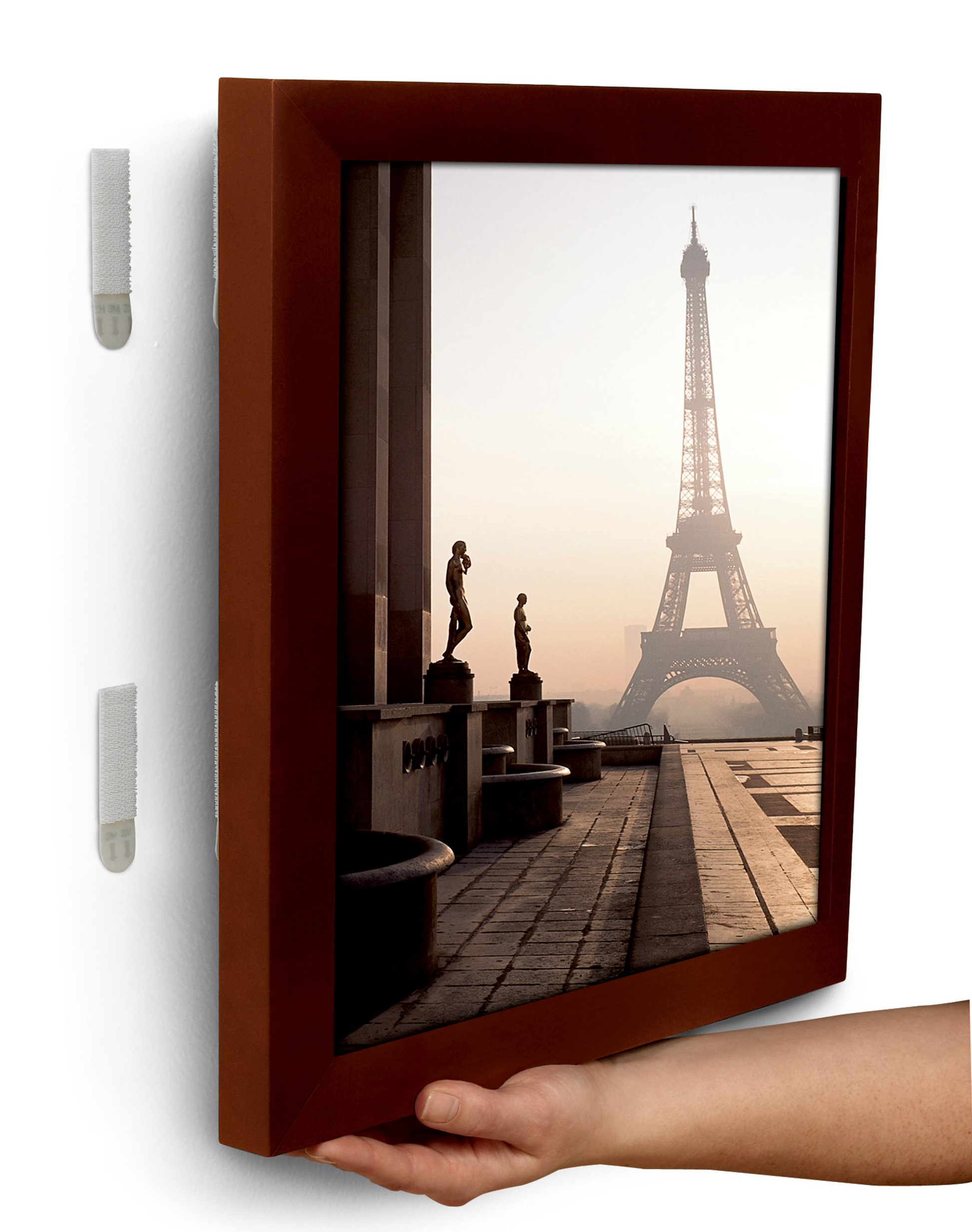 Denk daran, dass die Rahmenleiste eine Breite von mindestens 20 mm haben muss, damit das Klettband passt. Das maximale Gewicht bei Verwendung aller 4 Klettbänder beträgt 5 kg, was einem Bilderrahmen von 70x100 cm entspricht.