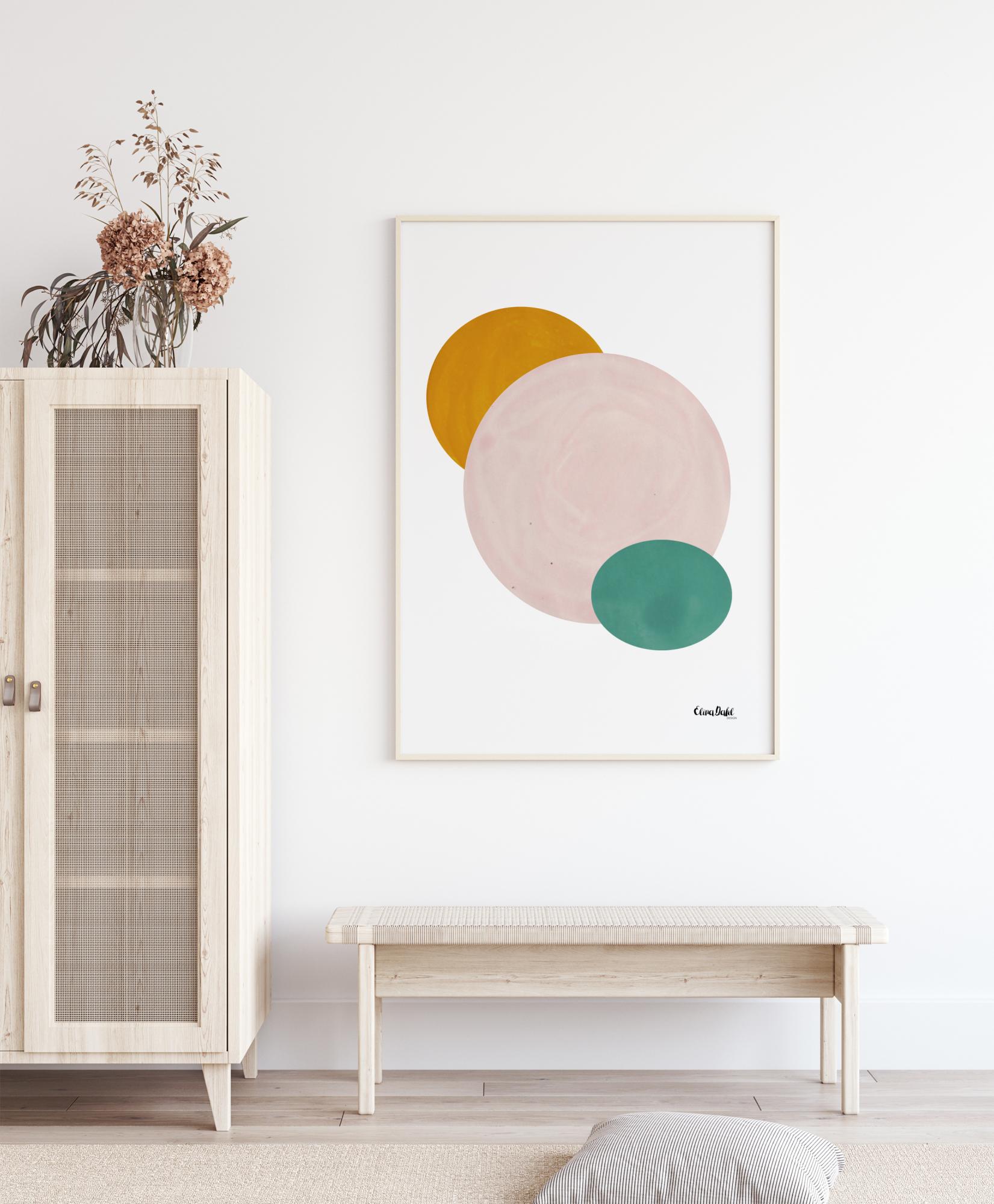 Ein herrlich unkompliziertes abstraktes Poster mit pastellfarbenen grafischen Formen, erstellt von der Designerin Elina Dahl. Ein stilvolles Bild, das hervorragend in das minimalistische, moderne oder retroinspirierte Zuhause passt. Dieses Poster sieht zusammen mit Elina Dahls anderen Postern im gleichen Stil fantastisch aus.