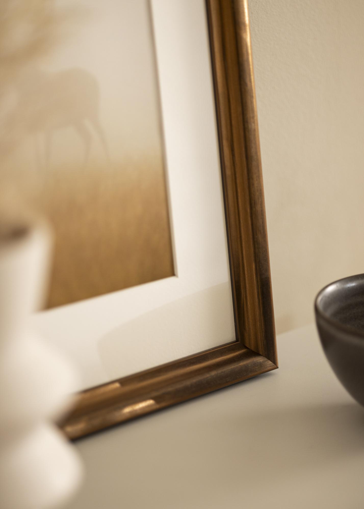 Stilvoller Bilderrahmen mit individuellen Maßen in einer wunderschönen Kupferfarbe, die einen robusten und exklusiven Eindruck vermittelt. Arjeplog Bronze ist kein Bilderrahmen, der sich für alle Motive eignet, aber für einige Bilder ist er die perfekte Wahl.