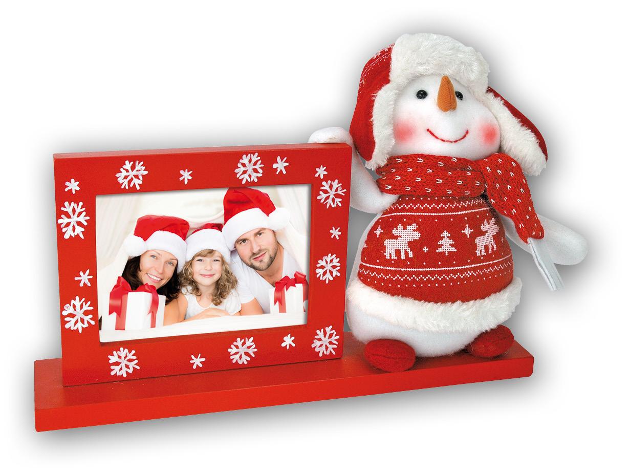 Roter Fotorahmen verziert mit Schneeflocken und einem schönen großen Schneemann. Perfekt, wenn du deinen wundervollen Bildern ein herrliches Weihnachtsgefühl verleihen möchtest.