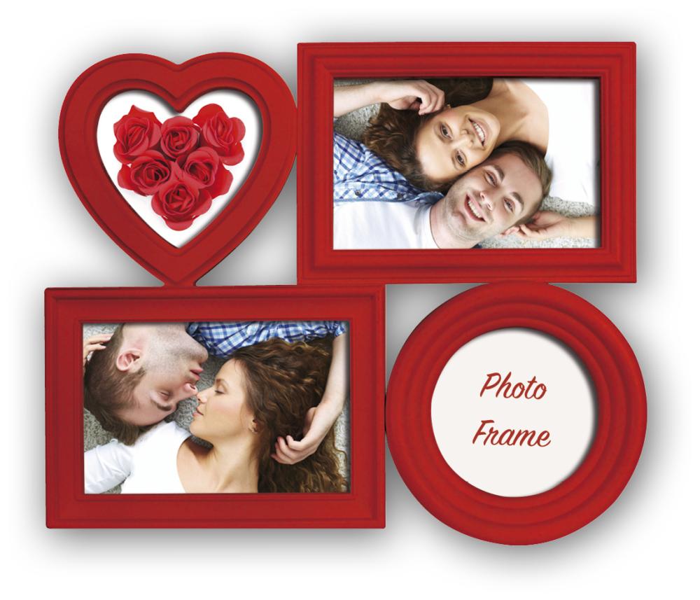 Collage-Rahmen in einer herrlichen roten Farbe, der Platz für 4 Bilder in unterschiedlichen Größen und Formen bietet. Perfekt, wenn du auf der Suche nach einem romantischen Fotorahmen für eure schönsten Bilder bist.
