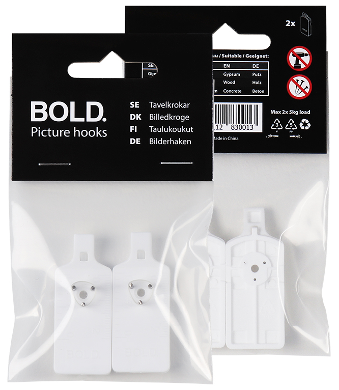 Manchmal funktioniert es einfach nicht, einen Nagel in die Wand zu schlagen. Mal ist die Wand zu dünn oder das Material der Wand ist nicht geeignet. Genau deshalb bietet es sich an, einfach einen Bilderhaken von BOLD Innovations als Wandbefestigung für Bilder zu verwenden. BOLD Innovations AB hat den weltweit ersten Bilderhaken hergestellt, der für jeden Bilderrahmen und jede Wand, die für das Aufhängen von Bildern in Frage kommt, geeignet ist. Und damit wurde gleichzeitig eine Methode gefunden, die das Aufhängen von Bildern mit einem praktischen Wandhaken einfach und unkompliziert macht.
