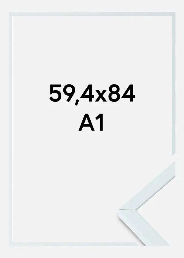 Hat dein Poster oder Bild die Größe 84x59,4 cm? Kein Problem. Die hier gezeigten 59,4x84 cm (DIN A1) Bilderrahmen sind auch für das Format 84x59,4 cm geeignet.