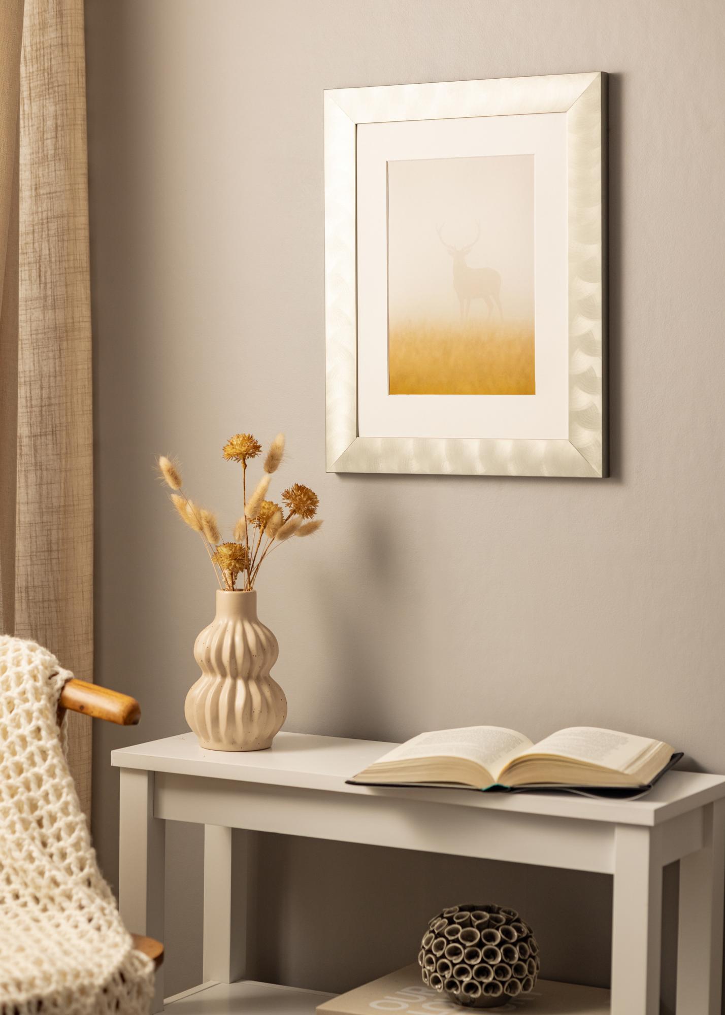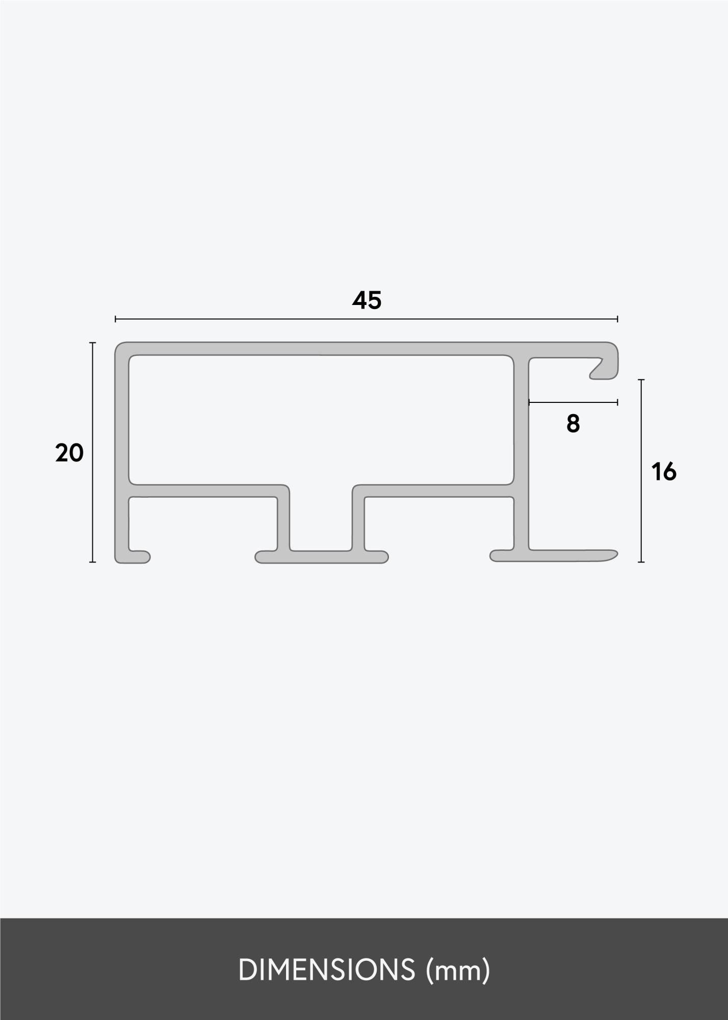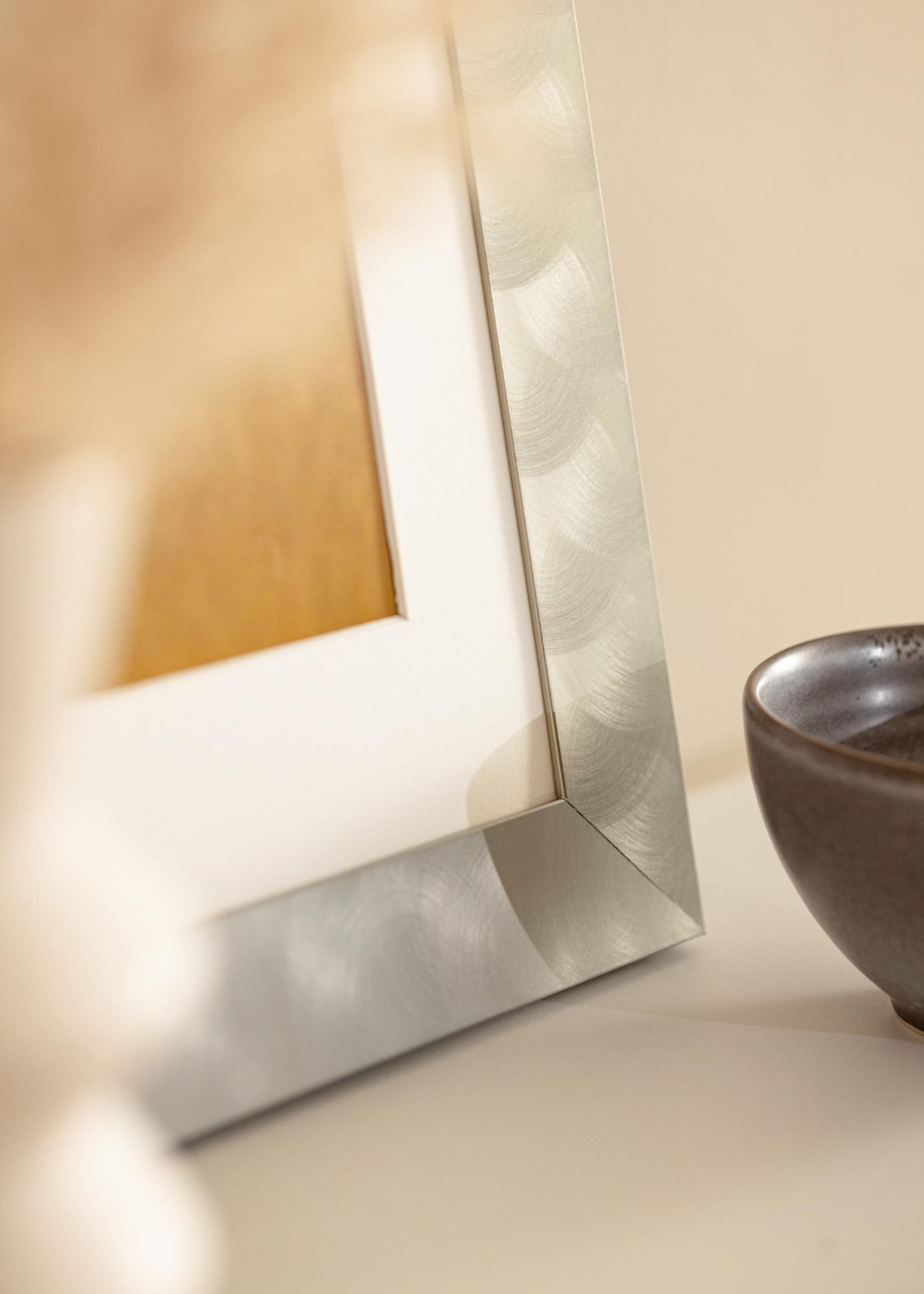 Breiter, hochwertiger Aluminiumrahmen mit einem hellen Stahl-Look, der mit seinem klaren Design sowohl in einem minimalistischen als auch einem gemischten Einrichtungsstil gut zur Geltung kommt. Der Rahmen eignet sich besonders gut zum Einrahmen von Schwarzweißfotos, Postern mit Zitaten und Grafikdrucken. Du kannst dein Bild entweder zusammen mit anderen passenderen Motiven oder Bilderrahmen in vielen verschiedenen Größen zu einer richtigen Bilderwand im Wohnzimmer kombinieren und damit einen anderen Blickfang als den Fernseher schaffen.