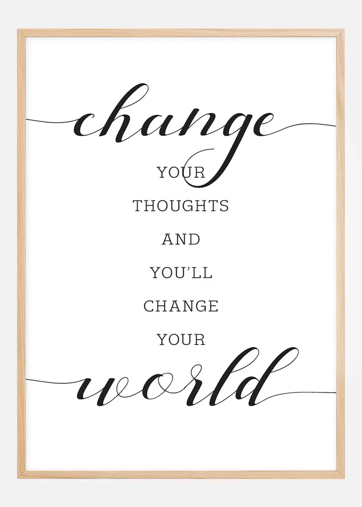 Ein Motivationsposter mit einer starken Botschaft für jeden Tag. Ändere deine Gedanken und du änderst deine Welt - eine großartige Botschaft, um den Tag zu beginnen. Hängen Sie dieses Poster im Badezimmer oder in der Küche auf und lassen Sie diese Botschaft jeden Tag aufs Neue auf sich wirken.