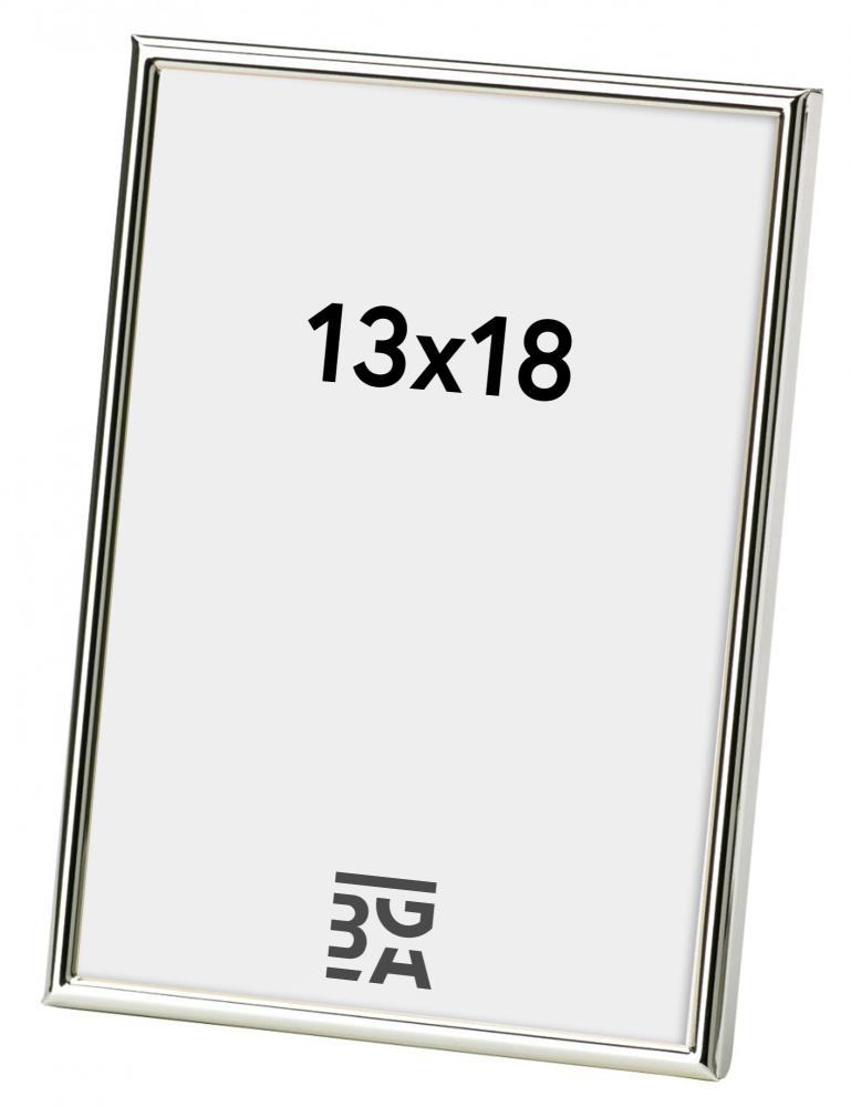 Chloe ist ein eleganter Porträtrahmen mit einem abgerundeten Profil in Neusilber, das für Bilder im Format 13x18 cm geeignet ist. Chloe ist ein hochwertiger Bilderrahmen von Walther, dessen Rückwand mit schwarzem Samt bezogen ist.