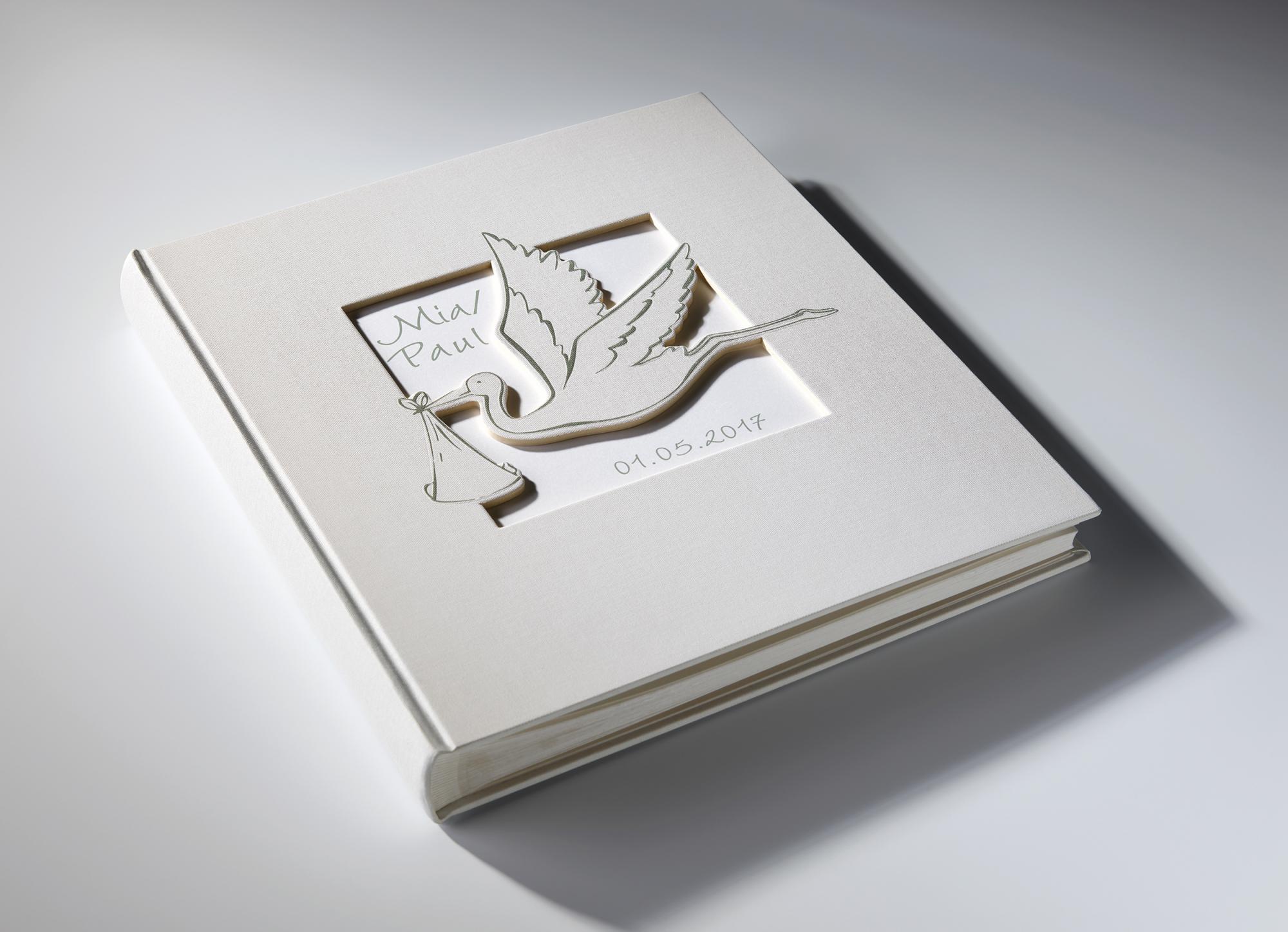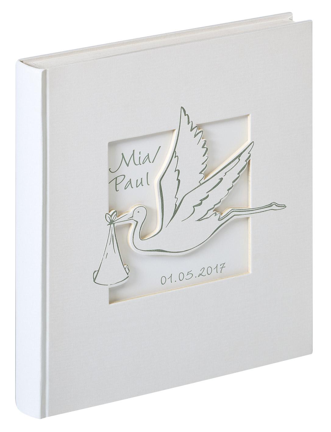 Hat der Storch einen der wunderbarsten Menschen der Welt gebracht? Herzlichen Glückwunsch! Feiere dein Glück, indem du alle süßen Babyfotos in diesem großartigen Album sammelst! Das Album ist weiß mit einer Bildöffnung auf der Vorderseite, die mit einem Storch verziert ist, der ein Knotentuch trägt. Im Inneren des Albums bieten 50 weiße Seiten Platz für deine persönlichen Collagen.