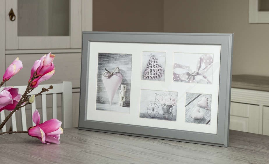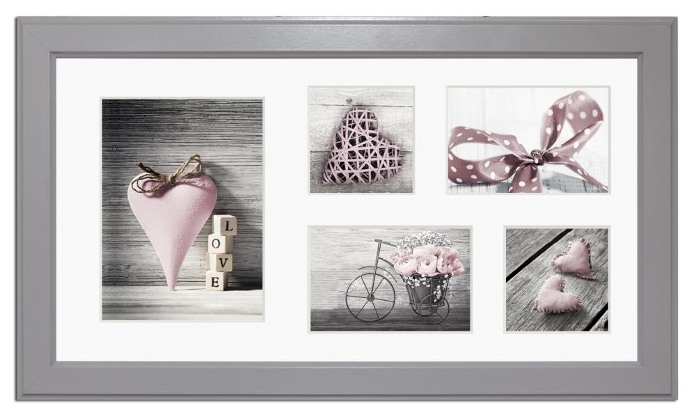 Collage-Rahmen Malmö Grau AB - 5 Bilder bietet Platz für 5 Bilder mit unterschiedlichen Maßen.