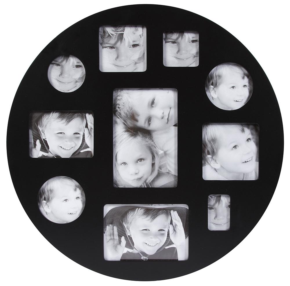 Runder schwarzer Collage-Rahmen für 10 Bilder in verschiedenen Größen. Perfekt für eine Familiencollage!