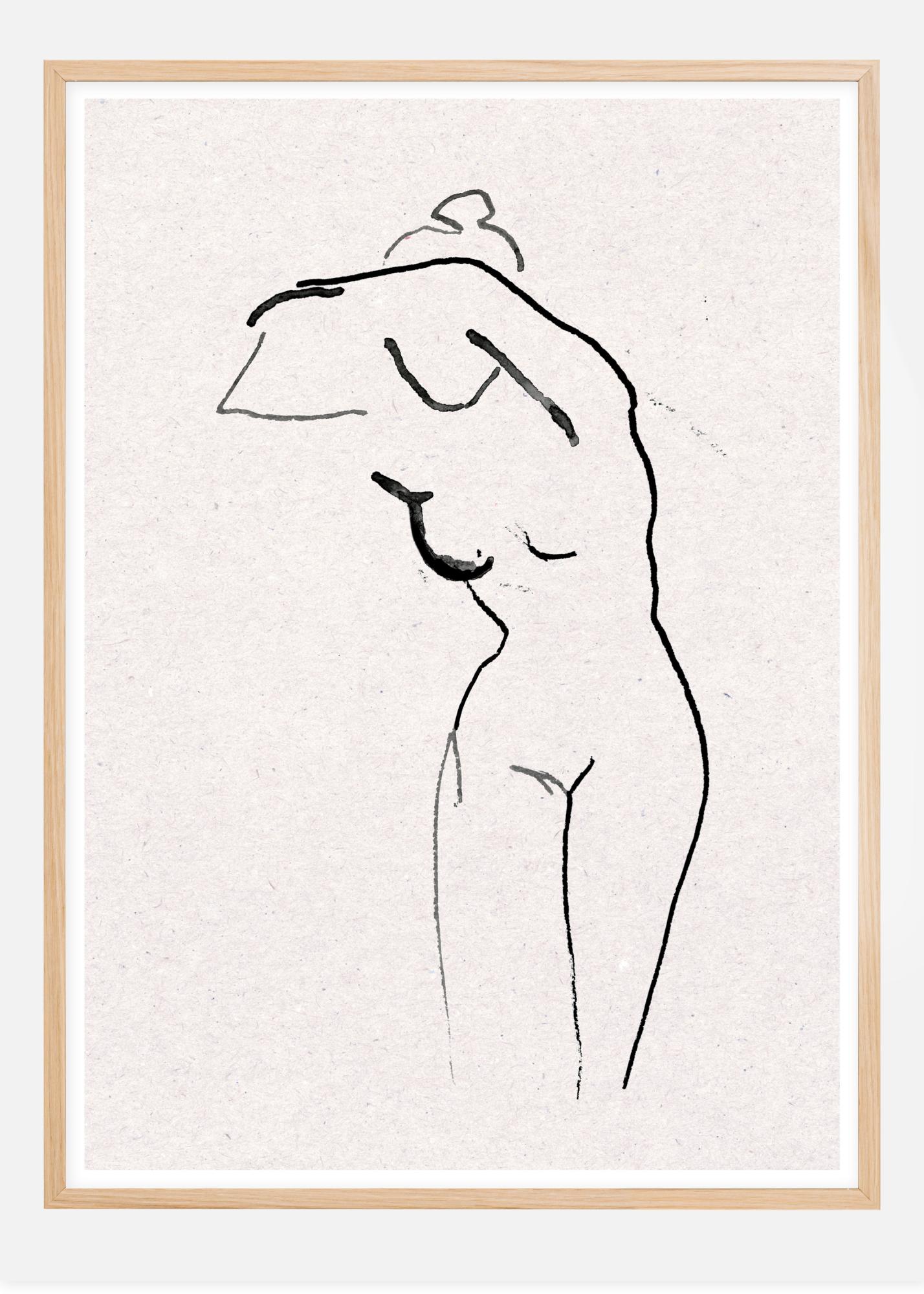 Ein grafischer Kunst poster in Aquarell, erstellt von Cora Kunst und Illustration. Hier nimmt eine Frau Form an in dünnen schwarzen Linien gegen einen leicht grauen Hintergrund. Das zarte Motiv wird dann von einem etwas schmaleren weißen Passepartout umgeben.