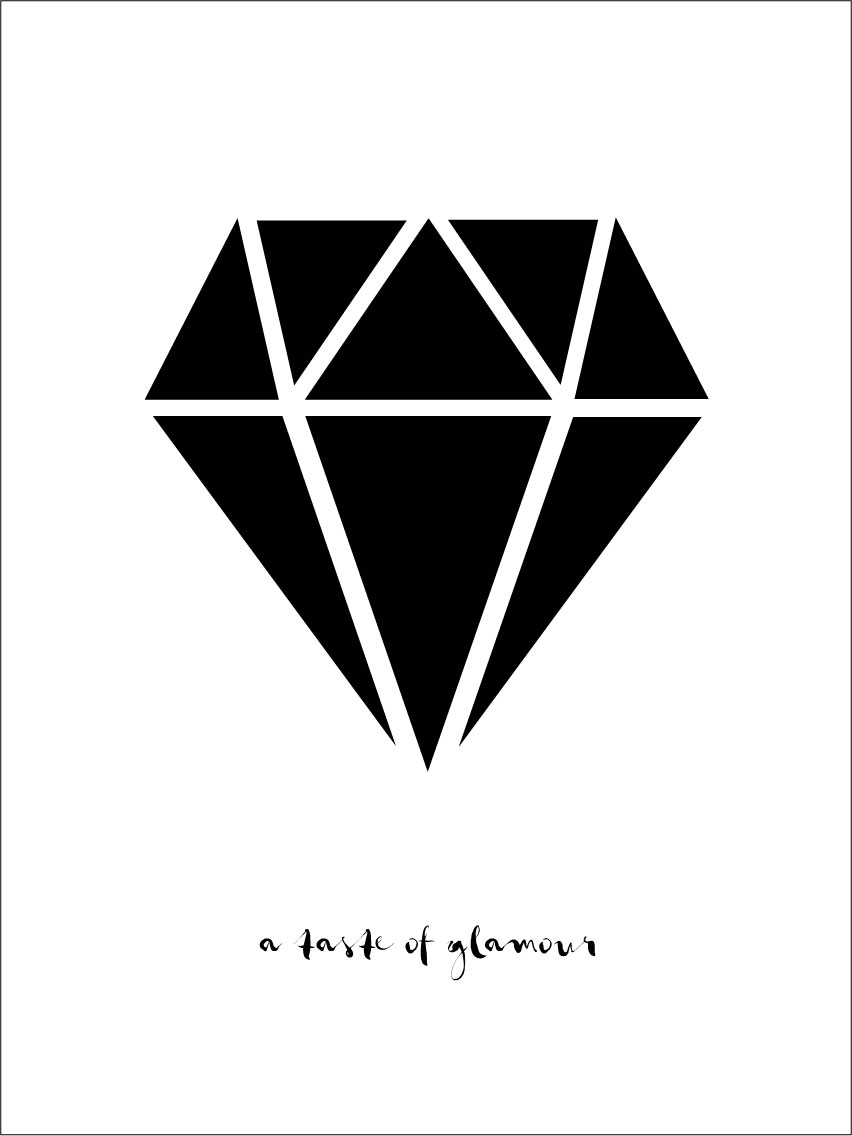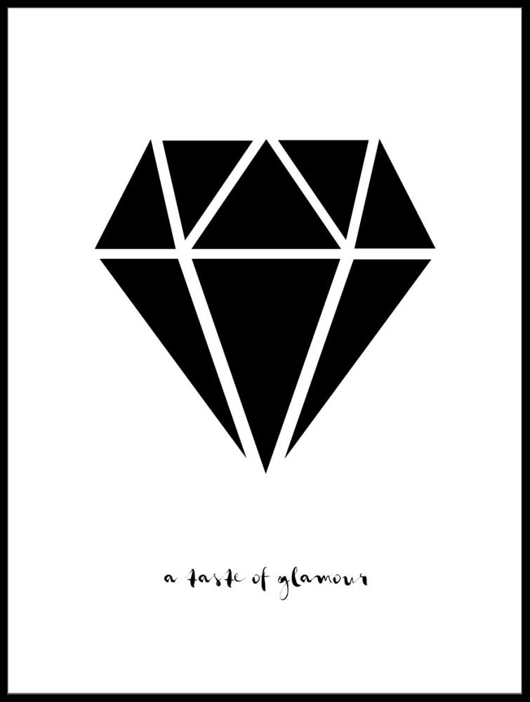 Diamant - Weiß mit schwarzem Druck Poster (30x40 cm)
