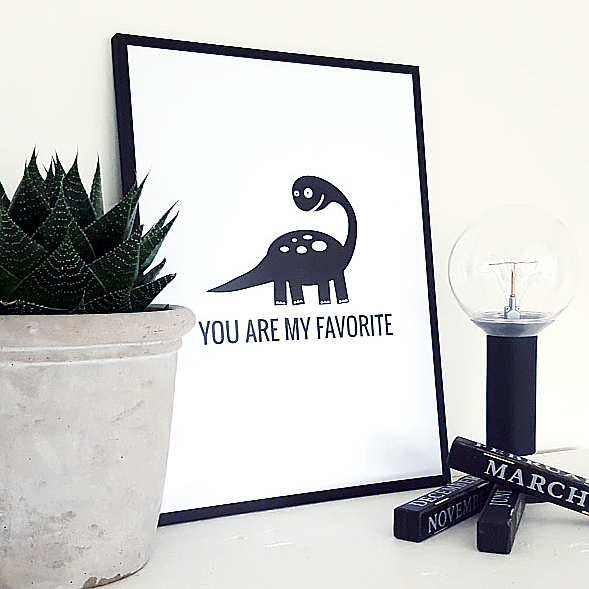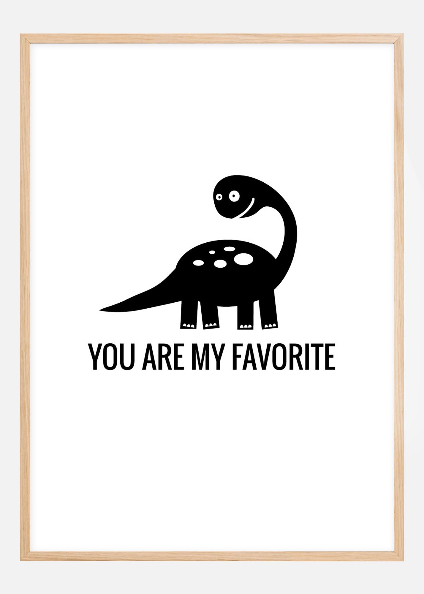 Niedliches Print mit einem süßen Dinosaurier, um es seinem absoluten Liebling auf der Welt zu geben. Richte das Kinderzimmer mit einem grafischen Blatt ein, das das Kind sich geliebt fühlt, speziell für alle Dino-Fans entwickelt. Die schwarze, stilvolle Schriftart sorgt dafür, dass das Plakat unabhängig von der Farbe und dem Stil des Zimmers passt. Passt gut zusammen mit Elefant Dream, Kanin Happy, Hund Little, Superhero oder Pingvin Cool.