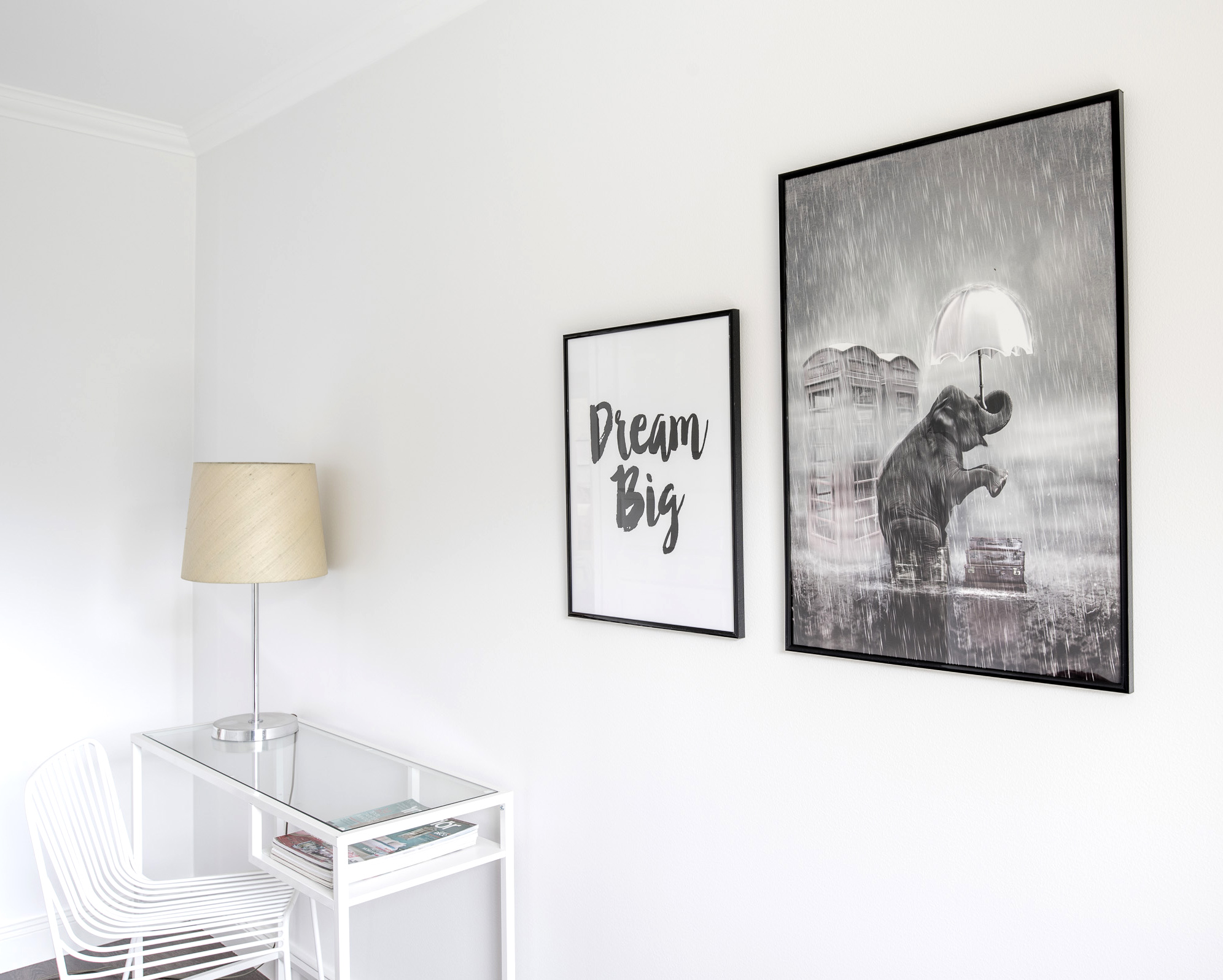 Der Einzige, der wirklich im Weg deiner Träume stehen kann, bist du selbst. Ändere deine innere Stimme und erinnere dich daran, dass du tatsächlich große Träume träumen darfst (und solltest) mit diesem schönen poster! Das plakat hat ein elegantes und einfaches Design mit dem Text „Dream Big“ in Schwarz auf weißem Hintergrund. Ergänze es gerne mit einem schwarzen oder weißen Passepartout und einem farbenfrohen Rahmen. Wähle zwischen 6 verschiedenen Formaten.