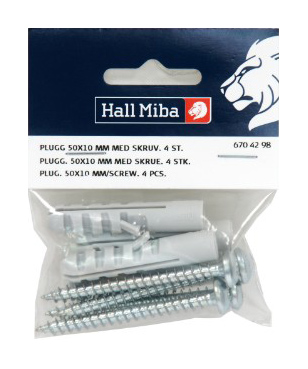 Dübel 50 x 10 mm mit Schraube 4er-Pack