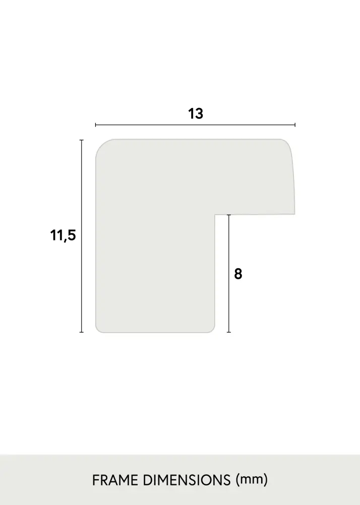 Set mit Bilderrahmen und passendem, weißem Passepartout. Das Produktbild zeigt die Maße des Rahmens (fettgedruckt) und die Innenmaße des Passepartouts (in Klammern). Bitte beachten, dass die Innenmaße des Passepartouts immer 1 cm kleiner sein müssen als die gewünschte Bildgröße.