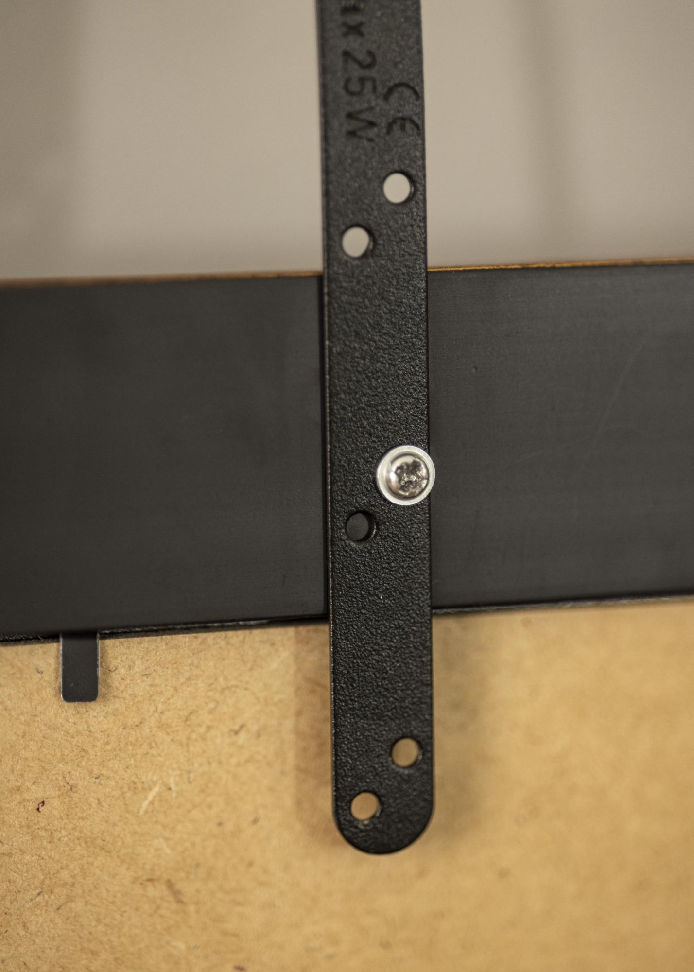Normalerweise wird die Bildbeleuchtung an der Rückseite des Bilderrahmens befestigt. Der Nachteil besteht darin, dass dies nur bei Holzrahmen (und gewissen Kunststoffrahmen) funktioniert, die ein breites Profil aufweisen, um das Einschrauben des Rahmens zu ermöglichen. Mit unserer Wandhalterung musst du dir keine Gedanken darüber machen, sondern kannst die Bildbeleuchtung ganz einfach direkt an der Wand hinter deinem Bild befestigen.