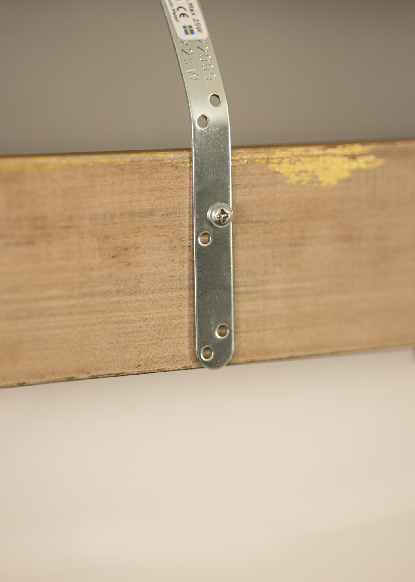 Normalerweise wird die Bildbeleuchtung an der Rückseite des Bilderrahmens befestigt. Der Nachteil besteht darin, dass dies nur bei Holzrahmen (und gewissen Kunststoffrahmen) funktioniert, die ein breites Profil aufweisen, um das Einschrauben des Rahmens zu ermöglichen. Mit unserer Wandhalterung musst du dir keine Gedanken darüber machen, sondern kannst die Bildbeleuchtung ganz einfach direkt an der Wand hinter deinem Bild befestigen.
