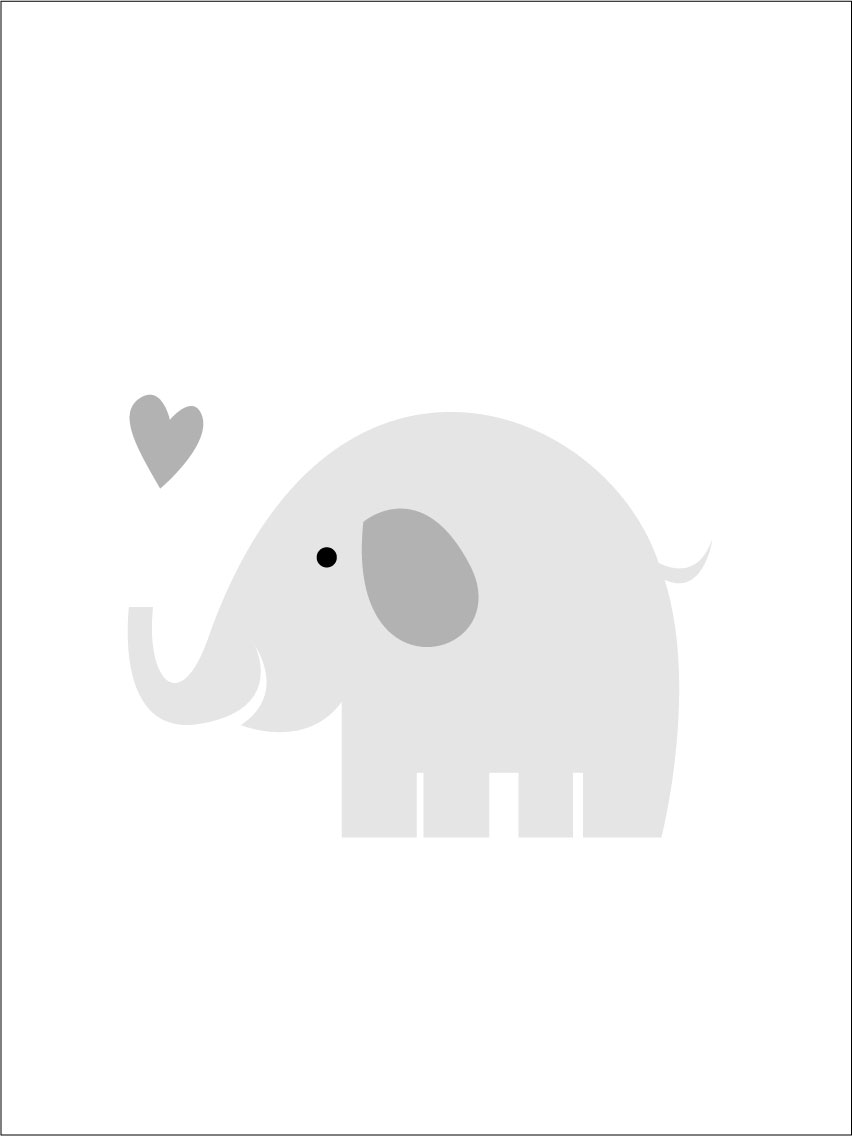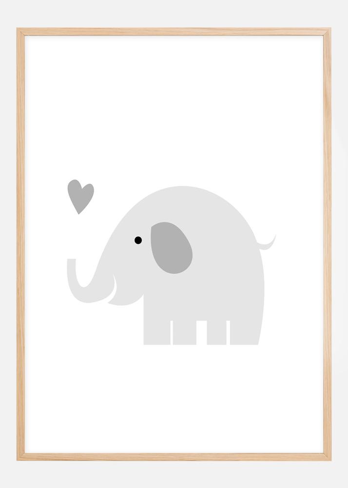 Poster mit einem grafischen Druck eines süßen Elefanten und eines Herzens in rauchgrauer Farbe auf weißem Hintergrund. Etwas für denjenigen, der alle Tiere der Savanne mag, passt aber vielleicht am besten in die Zimmer jüngerer Kinder. Das poster kann mit anderen Tier- oder Elefantenpostern in derselben Farbgebung kombiniert werden, um ein wunderbares Märchengefühl im Kinderzimmer zu schaffen.