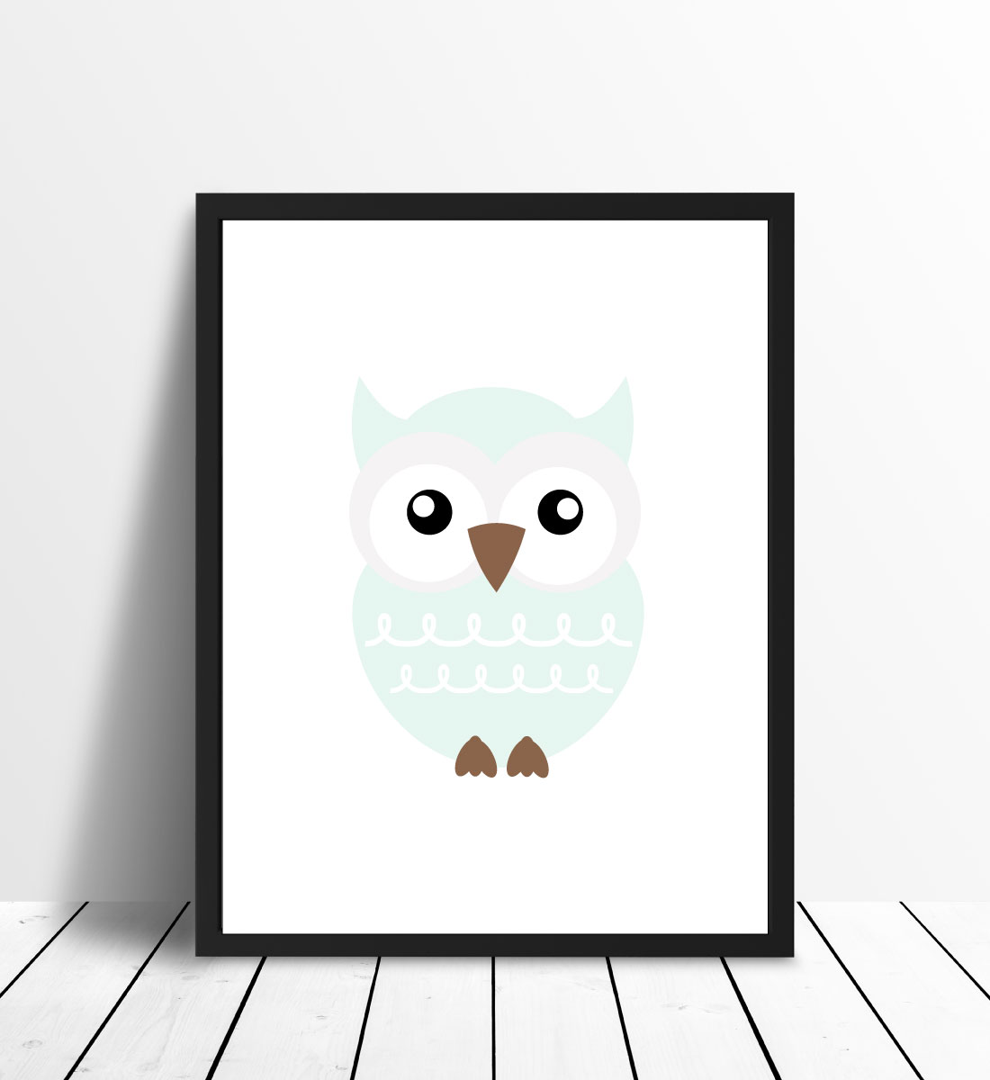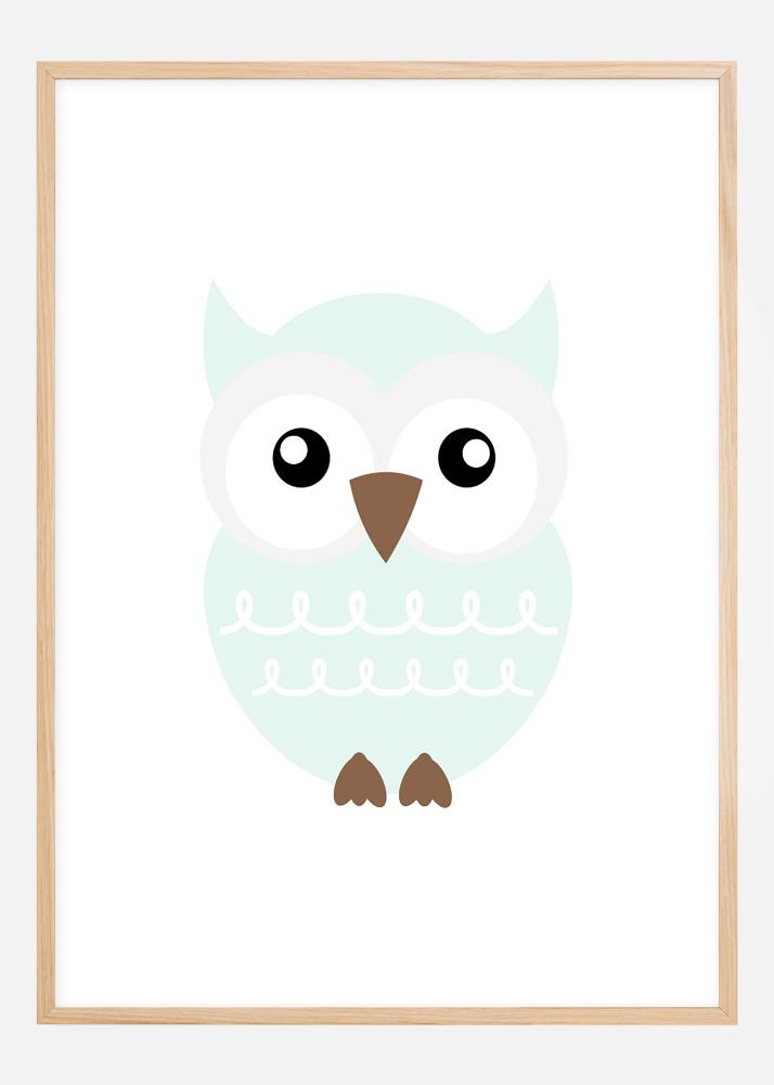 Süßes Poster mit dem beliebtesten Haustiervogel, der Eule. Die Illustration einer stilisierten eisblauen Eule vor weißem Hintergrund ist zu einem modernen Klassiker geworden. Das Motiv passt sowohl ins Wohnzimmer als auch ins Kinderzimmer und kommt besonders gut zur Geltung, wenn die Einrichtung die Farbe des Bildes aufnimmt. Kombinieren Sie es mit anderen Vögeln oder Tieren für ein wildes Gefühl.
