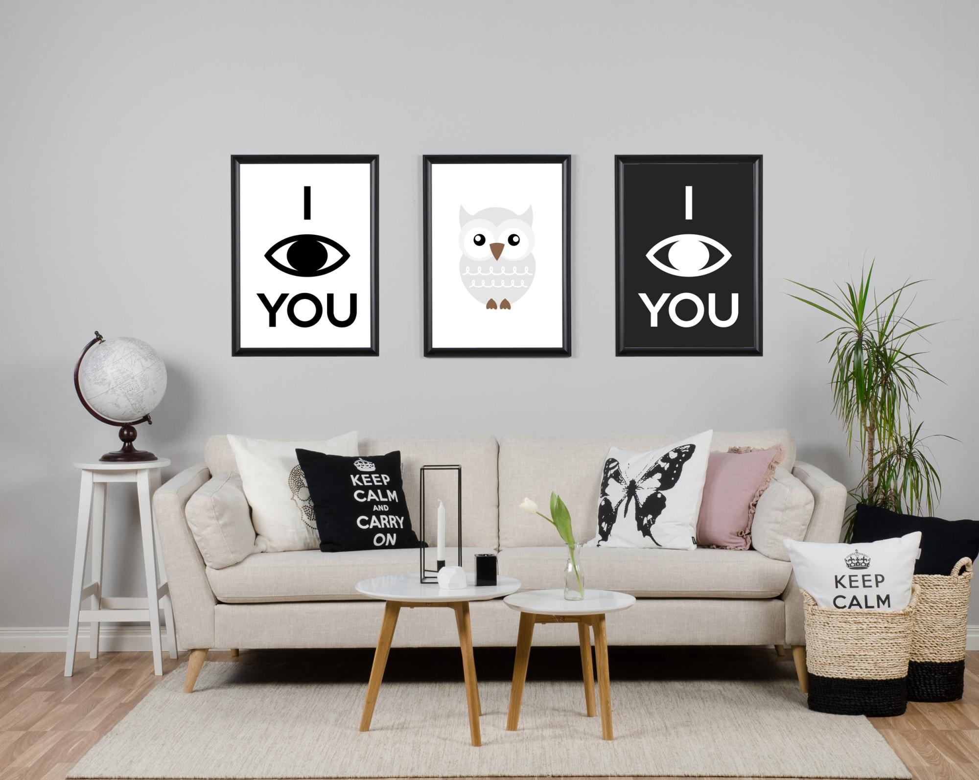 Süßes Poster mit dem Innenraum-Vogel Nummer eins, der Eule. Die Illustration einer stilisierten dunkelgrauen Eule auf weißem Hintergrund ist zu einem modernen Klassiker geworden. Das Motiv passt sowohl ins Wohnzimmer als auch ins Kinderzimmer und kommt besonders gut zur Geltung, wenn die Einrichtung die Farbe des Bildes aufnimmt. Kombinieren Sie es mit anderen Vögeln oder Tieren für ein wildes Gefühl.