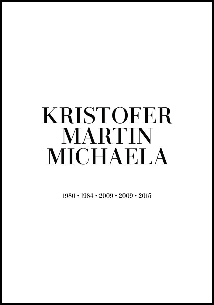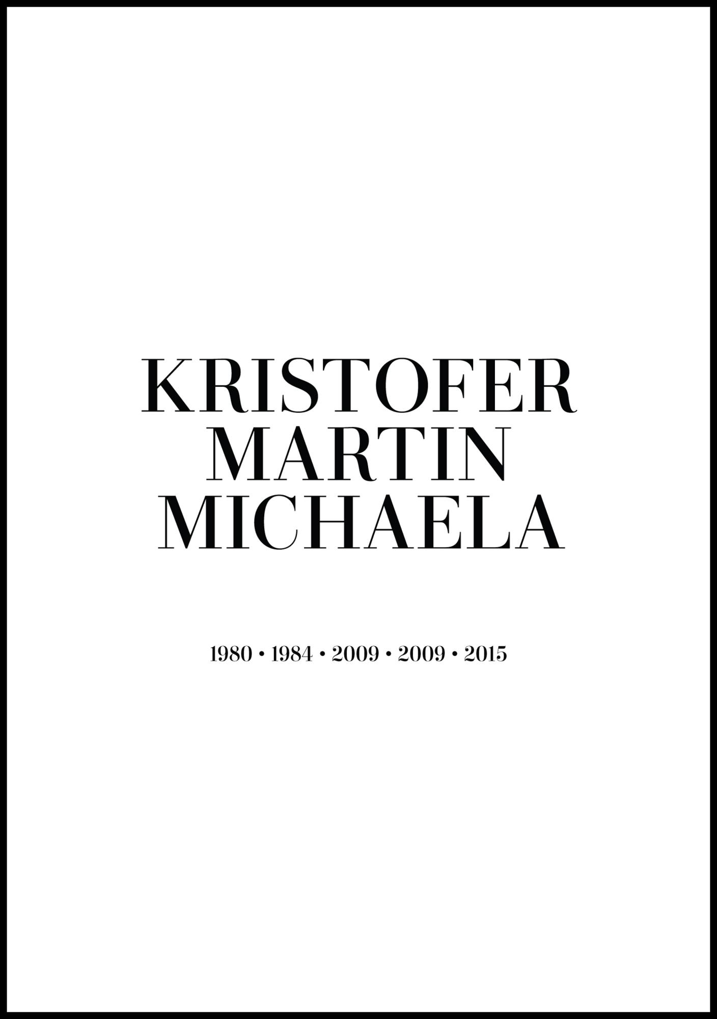 Familienbild - 3 Namen & Geburtsjahre - Weiß (21x29,7 cm (A4))