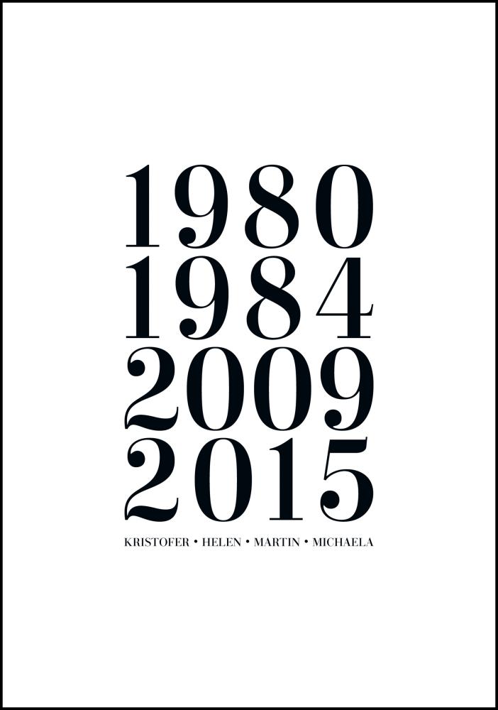 Familienbild - 4 Geburtsjahre & Namen - Weiß (21x29,7 cm (A4))