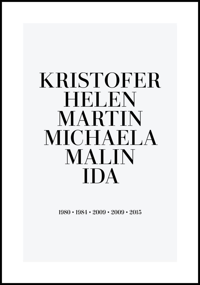 Familienbild - 6 Namen & Geburtsjahre - Grau (21x29,7 cm (A4))