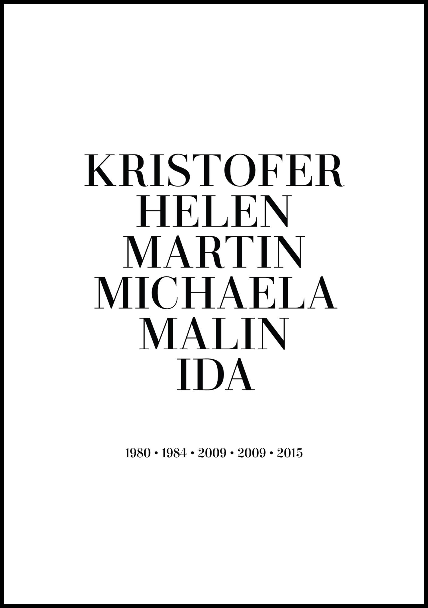 Familienbild - 6 Namen & Geburtsjahre - Weiß (21x29,7 cm (A4))