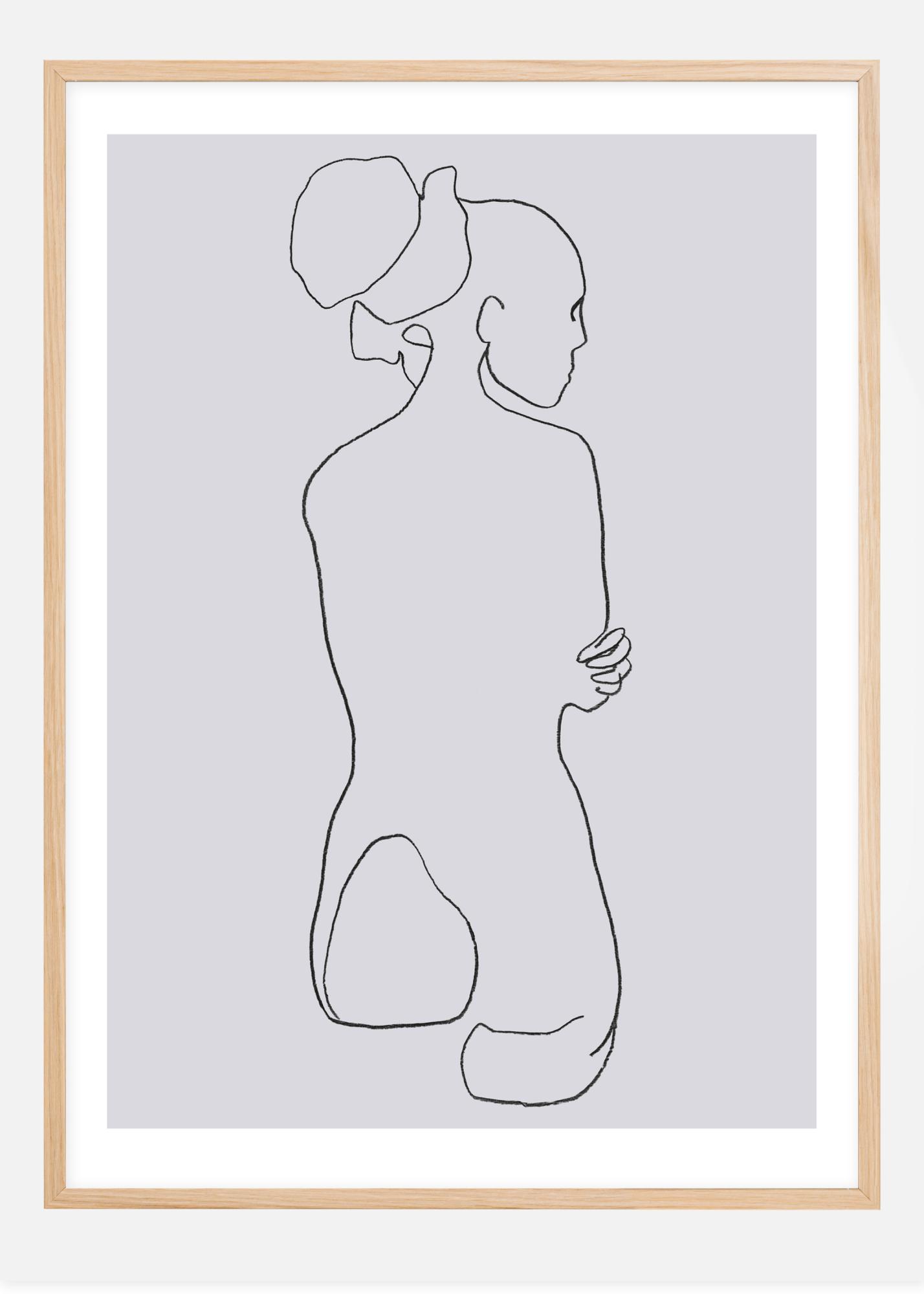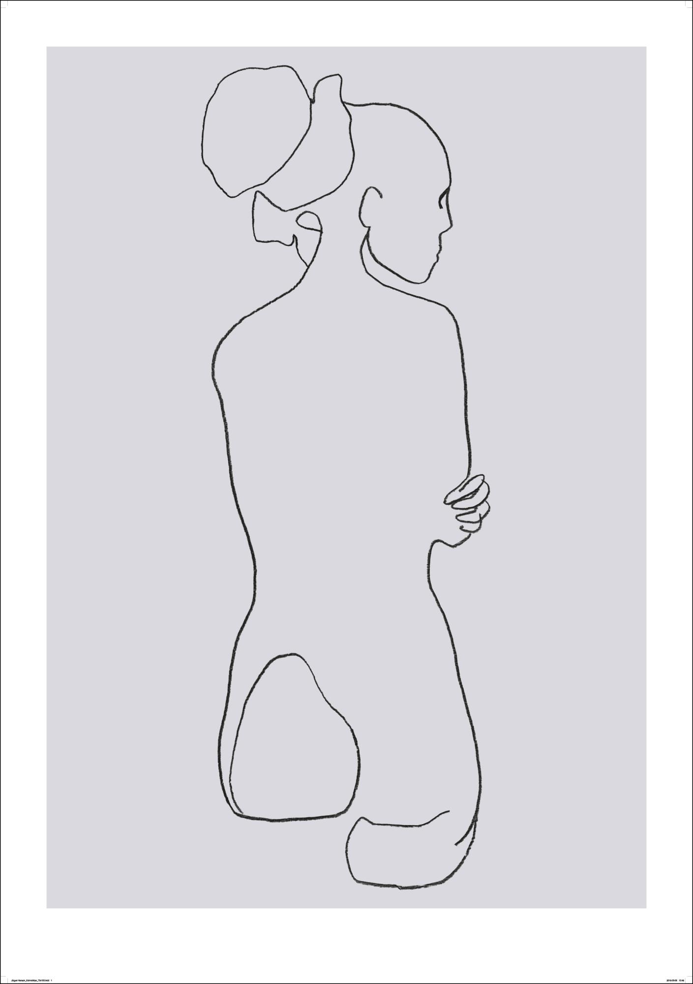 Zierliche Linienkunst, die den nackten Rücken einer Frau und hochgestecktes Haar darstellt, geschaffen von Künstler Jörgen Hansson bei Jörgen Hansson Art. Ein stilvolles Poster, das gut mit Jörgen Hanssons Werken Female Lines II und Female Lines III kombiniert werden kann.