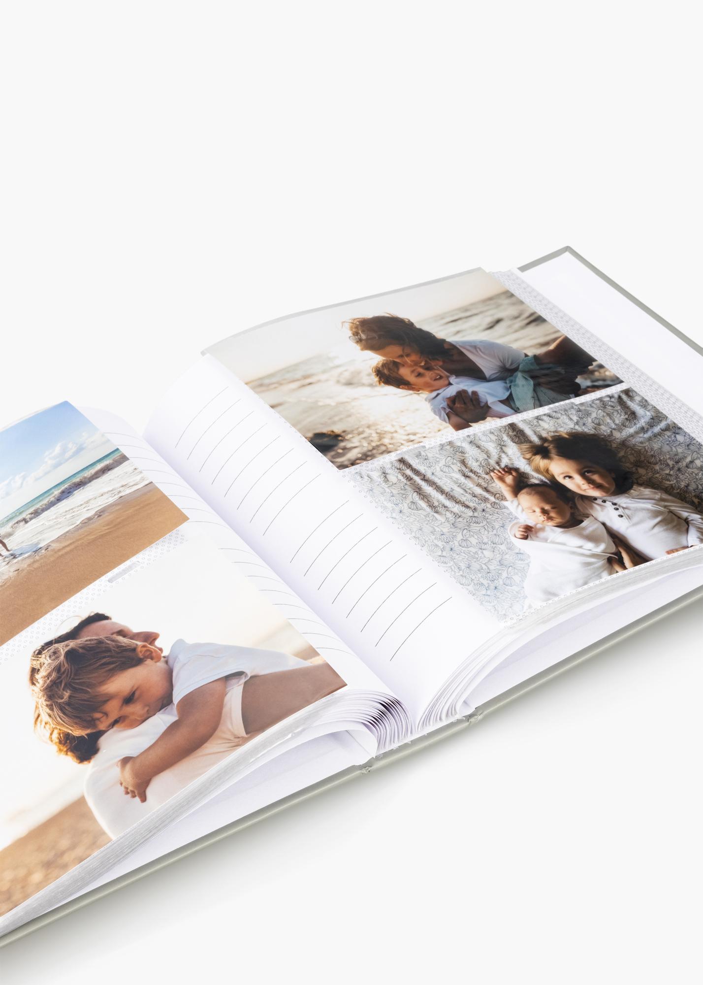 Die Einbände des Albums sind in einer zeitlosen grauen Farbe gehalten, die in jedes Heim und jeden Einrichtungsstil passt. Die weißen Seiten bieten einen sauberen und frischen Hintergrund für Ihre Fotografien, während das Querformat jeder Aufnahme ihren einzigartigen Charme verleiht. Für jedes Foto gibt es außerdem ein passendes Schreibfeld, in dem Sie bemerkenswerte Details oder Daten notieren können, was das Album sowohl persönlich als auch informativ macht.