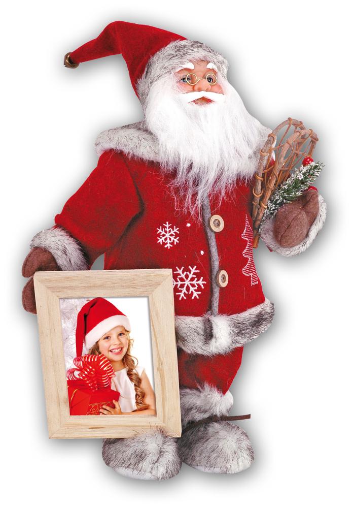 Ein etwas anderer Fotorahmen, bestehend aus einem 39 cm hohen Weihnachtsmann, der einen Rahmen in der Hand hält, der einem Bild im Format 7x10 cm Platz bietet. Lustiger und origineller Weihnachtsschmuck!