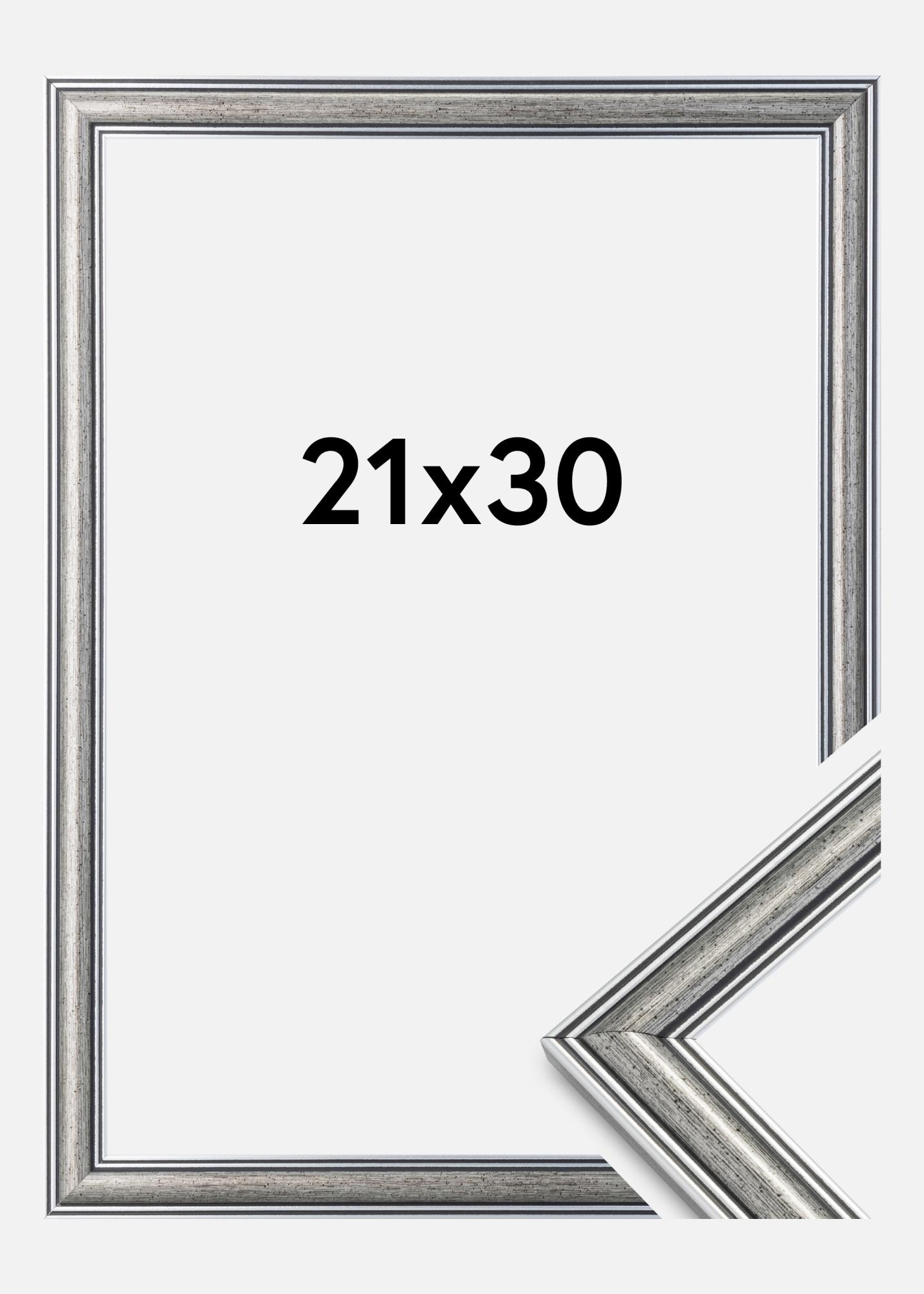 Frigg ist ein Silberrahmen mit schwarzen Linien und schwärzlichen Komponenten. Perfekt, wenn du nach einem breiten Silberrahmen mit traditionellem Design suchst, der in die meisten Räume und Umgebungen passt.