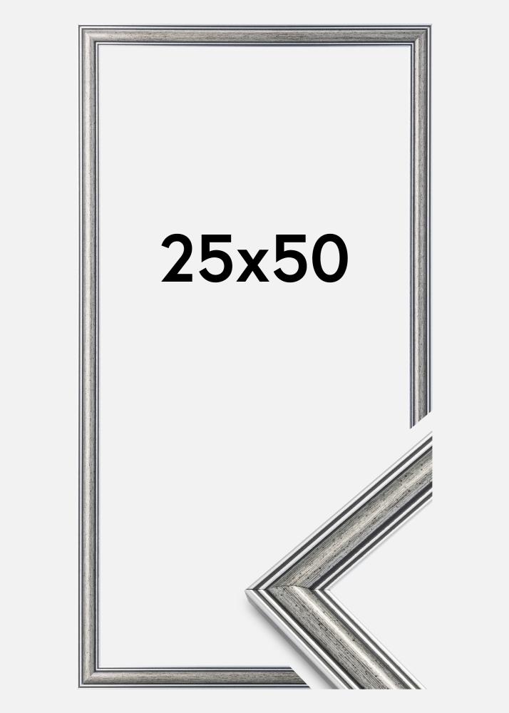 Frigg ist ein Silberrahmen mit schwarzen Linien und schwärzlichen Komponenten. Perfekt, wenn du nach einem breiten Silberrahmen mit traditionellem Design suchst, der in die meisten Räume und Umgebungen passt.