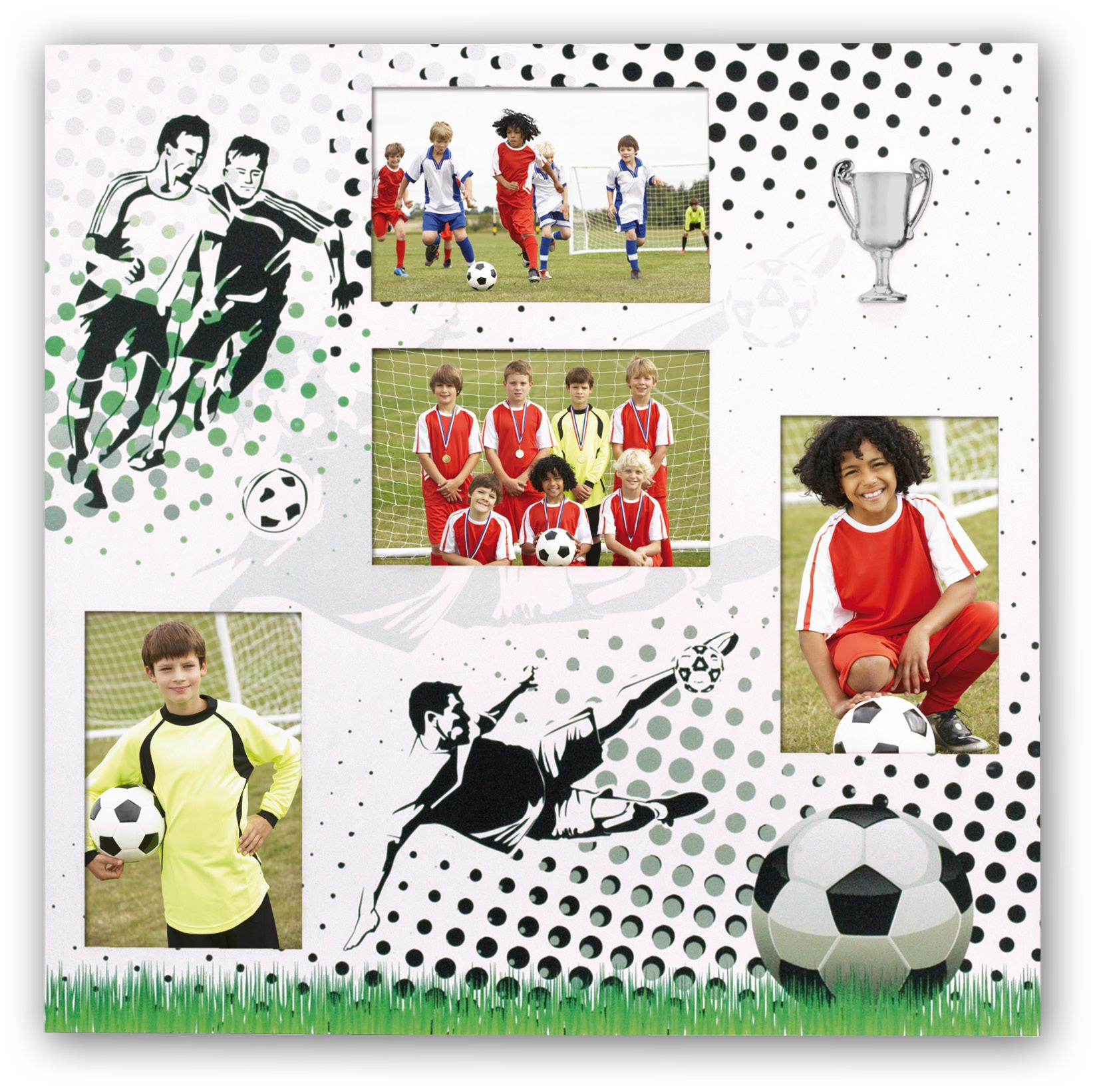Wunderschön gestalteter Collage-Rahmen mit Platz für 4 Bilder für alle Fußballfans. Dieser Bilderrahmen bietet Platz für Bilder im Quer- und Hochformat. Bestelle noch heute und erstelle schon morgen deine eigene Fußballcollage!