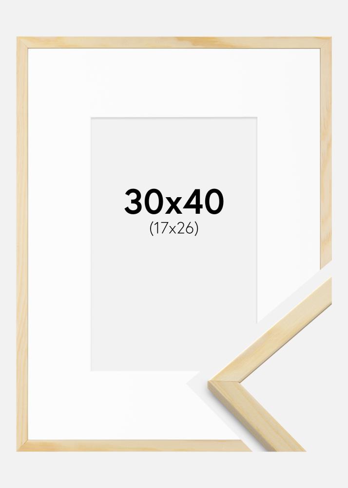 Rahmen Galant Kiefer 30x40 cm - Passepartout Weiß 18x27 cm
