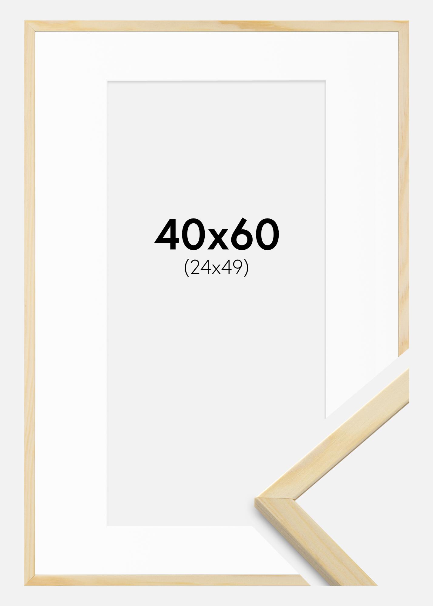 Rahmen Galant Kiefer 40x60 cm - Passepartout Weiß 25x50 cm