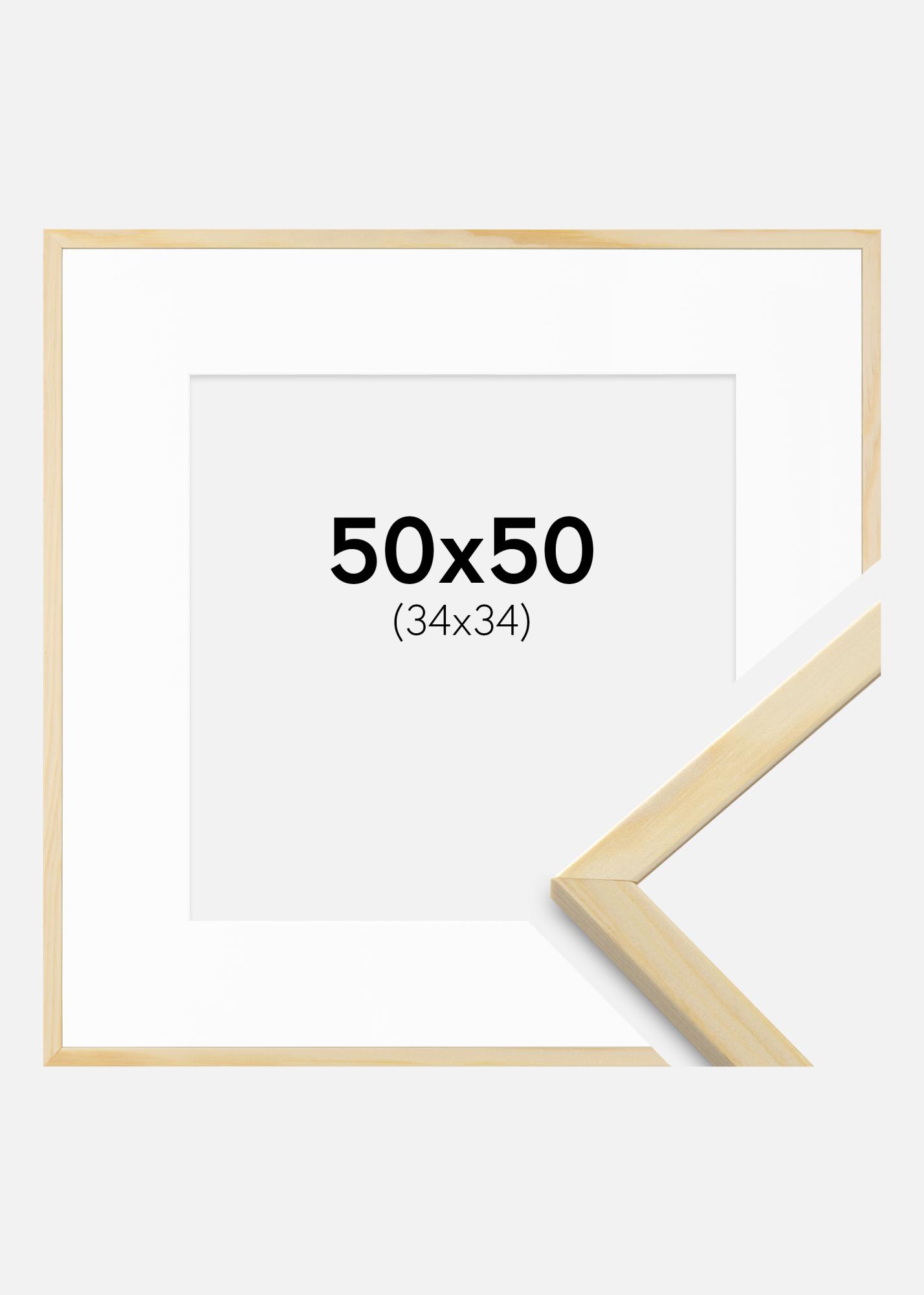 Rahmen Galant Kiefer 50x50 cm - Passepartout Weiß 35x35 cm