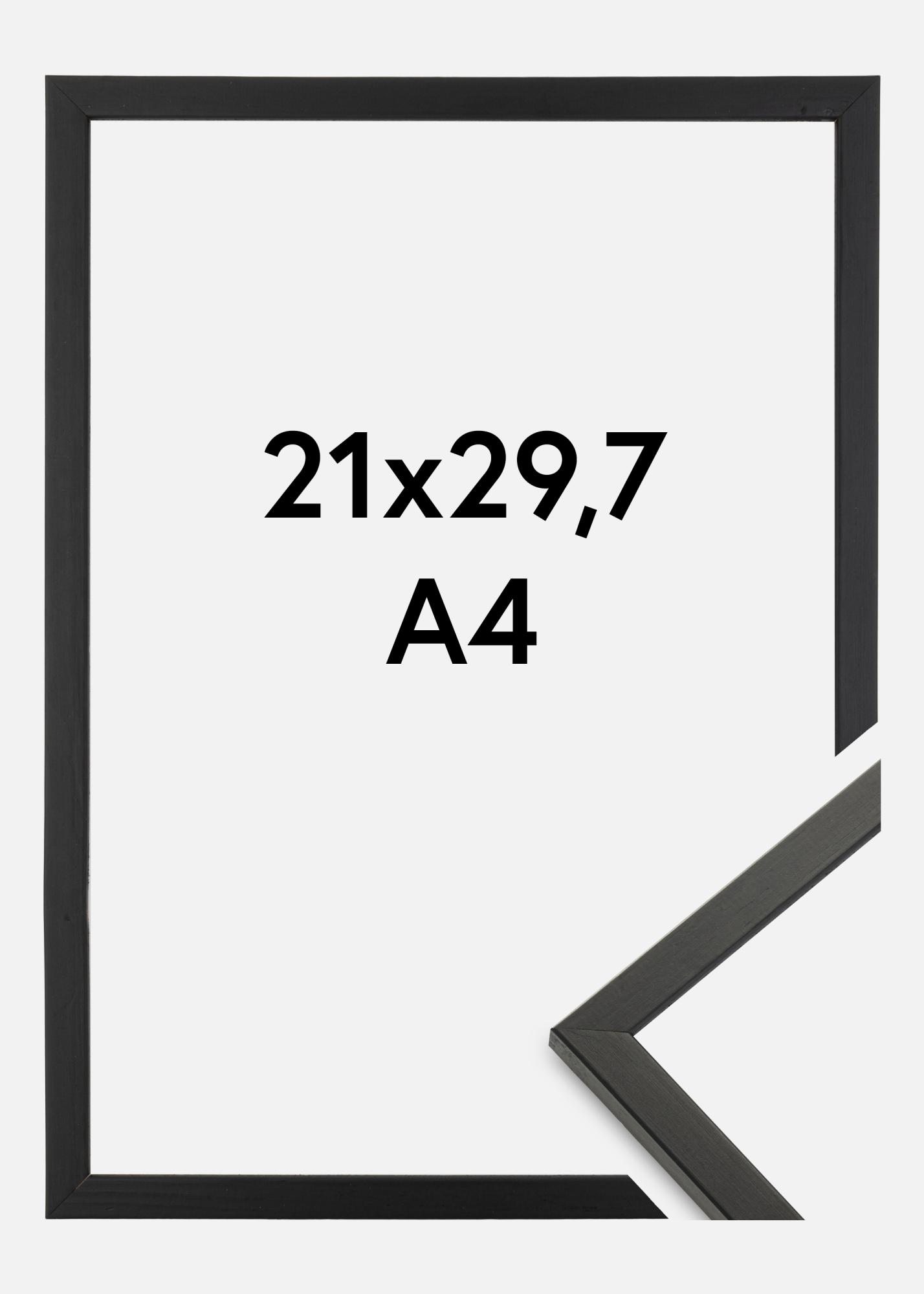 Klassischer schwarzer Bilderrahmen in dunklem Holz, schwarz, passend für Bilder der Grööße 21,29,7 cm (A4). Schwarze Bilderrahmen gelten als Klassiker, die für sämtliche Bilder und Motive passen und sich sehr gut mit anderen Farben kombinieren lassen. Der Holzrahmen verfügt über echtes Bilderglas, was wir von BGA sehr schätzen, da die Bildqualität damit nicht beeinträchtigt und das Bildmotiv wirklichkeitsgetreu wiedergegeben wird.