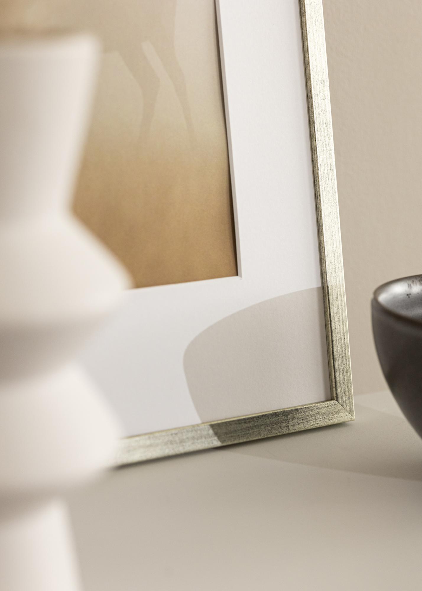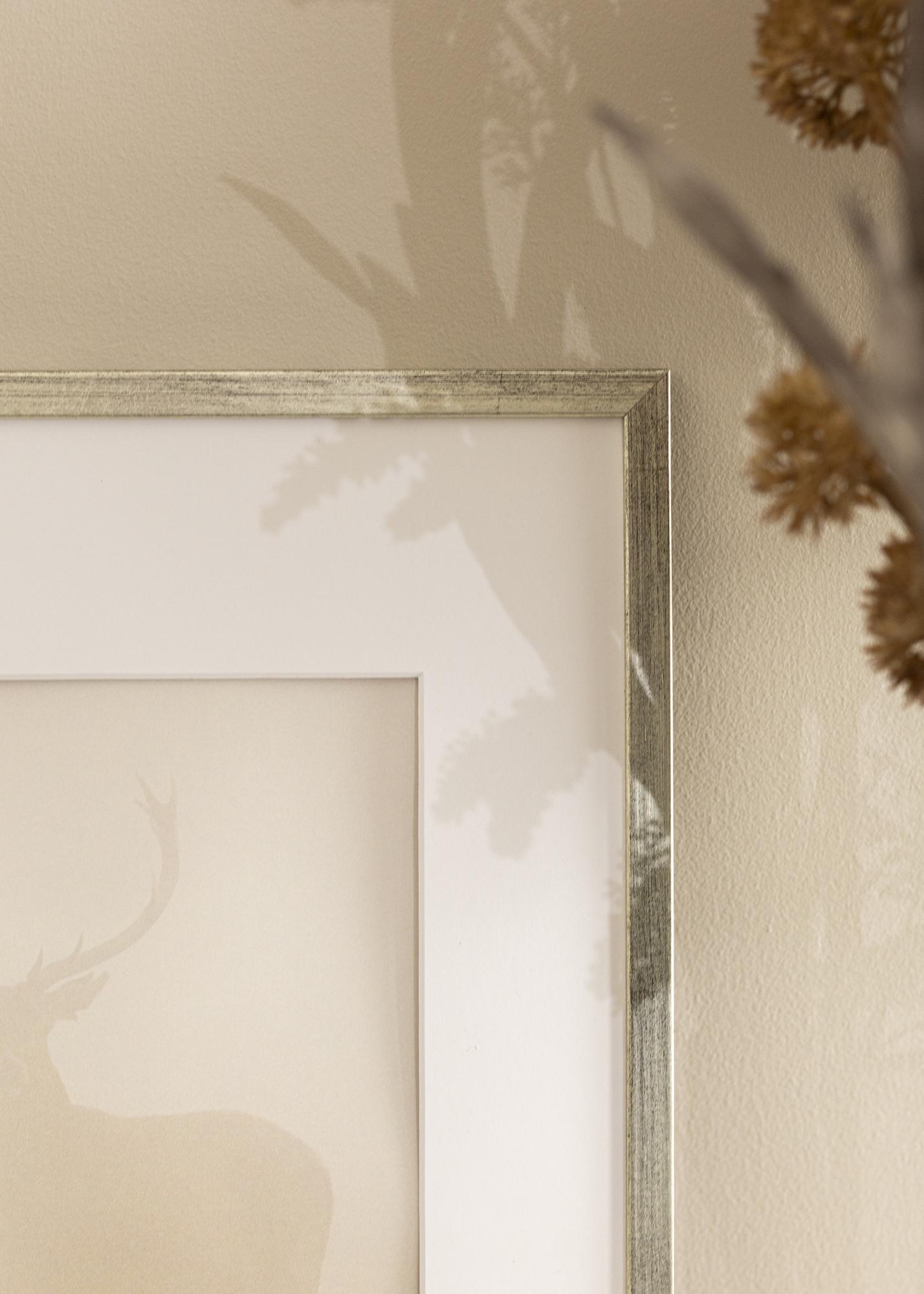 Stilvoller Holzrahmen mit einem geraden Profil, das mit seiner abgenutzt aussehenden, silberfarbenen Oberfläche mit schwärzlichen Nuancen ein schönes Vintage-Gefühl vermittelt. Das weiche silberfarbene Profil von Galant Silber macht dieses Modell zu einem Bilderrahmen, der für fast alle Arten von Bildern geeignet ist.
