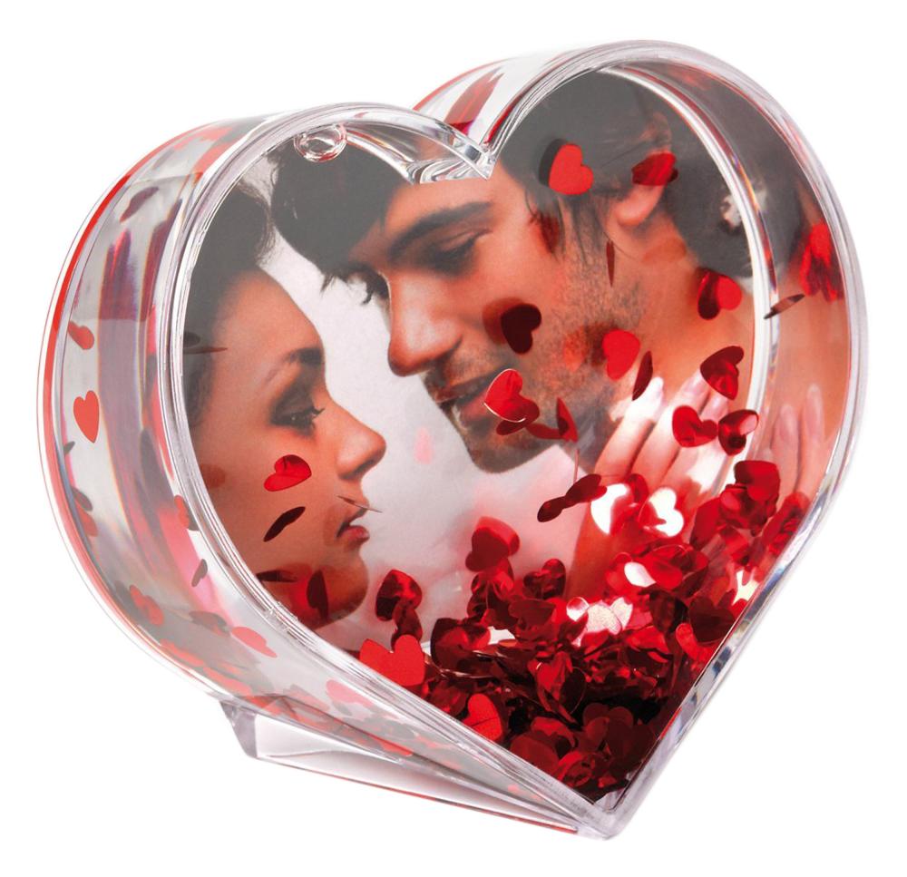 Dieser herzförmige Fotorahmen bietet eine wirklich hübsche, romantische Einrahmung für dein Bild. Der Herz-Bilderrahmen ist aus widerstandsfähigem Acrylglas gefertigt, mit kleinen roten Metallherzen gefüllt und funktioniert ähnlich wie eine „Schneekugel“. Der Fotorahmen Herz-Glitter bietet Platz für ein Foto im Format 9,1x6,5 cm.