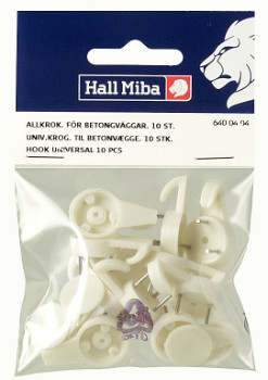 Kleine Bilderhaken im 10er-Pack für Betonwände. Vermeidet das Bohren und Dübeln. Für Bilder mit geringem Gewicht.