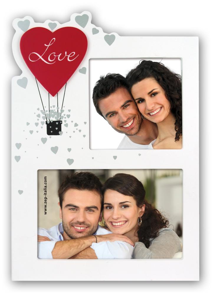 Collage-Rahmen im Zeichen der Liebe mit Platz für 2 Bilder. Der Bilderrahmen ist romantisch mit kleinen süßen Herzen und dem Schriftzug "Love" dekoriert.