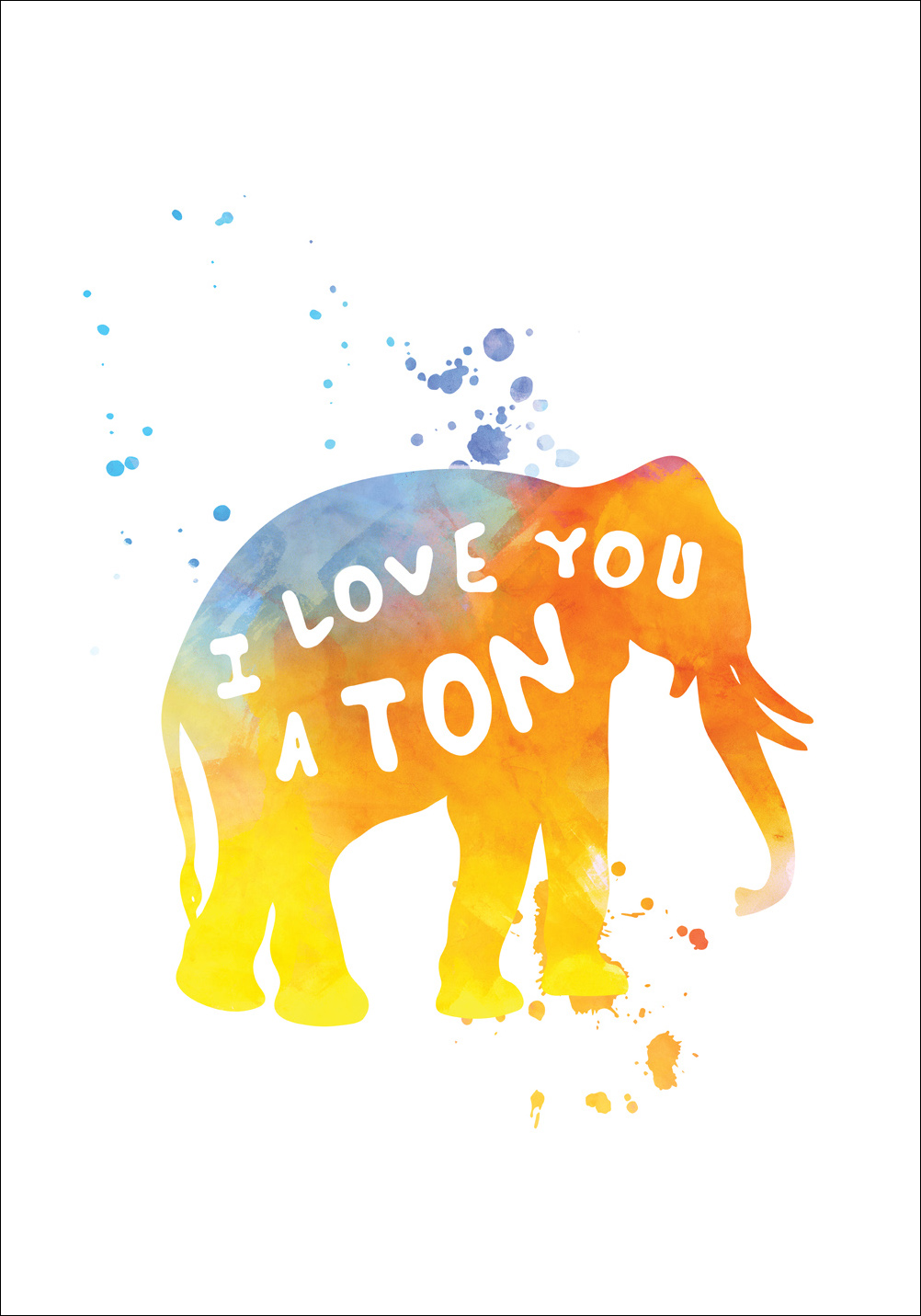 Liebevolles und lustiges Plakat, das sich perfekt als Geschenk für jemanden eignet, der Elefanten liebt und einen Farbtupfer an der Wand haben möchte. Der Elefant scheint mit einem Überfluss an Farben auf weißem Papier gedruckt zu sein, mit Text in weißer Schriftart, die ein handgeschriebenes Gefühl vermittelt. Das Poster ist schön in einem schlichten einfarbigen Rahmen einzurahmen, der die Nuancen im Motiv hervorhebt und der sich gut in die übrige Einrichtung des Raumes einfügt, in dem das Bild aufgehängt werden soll.
