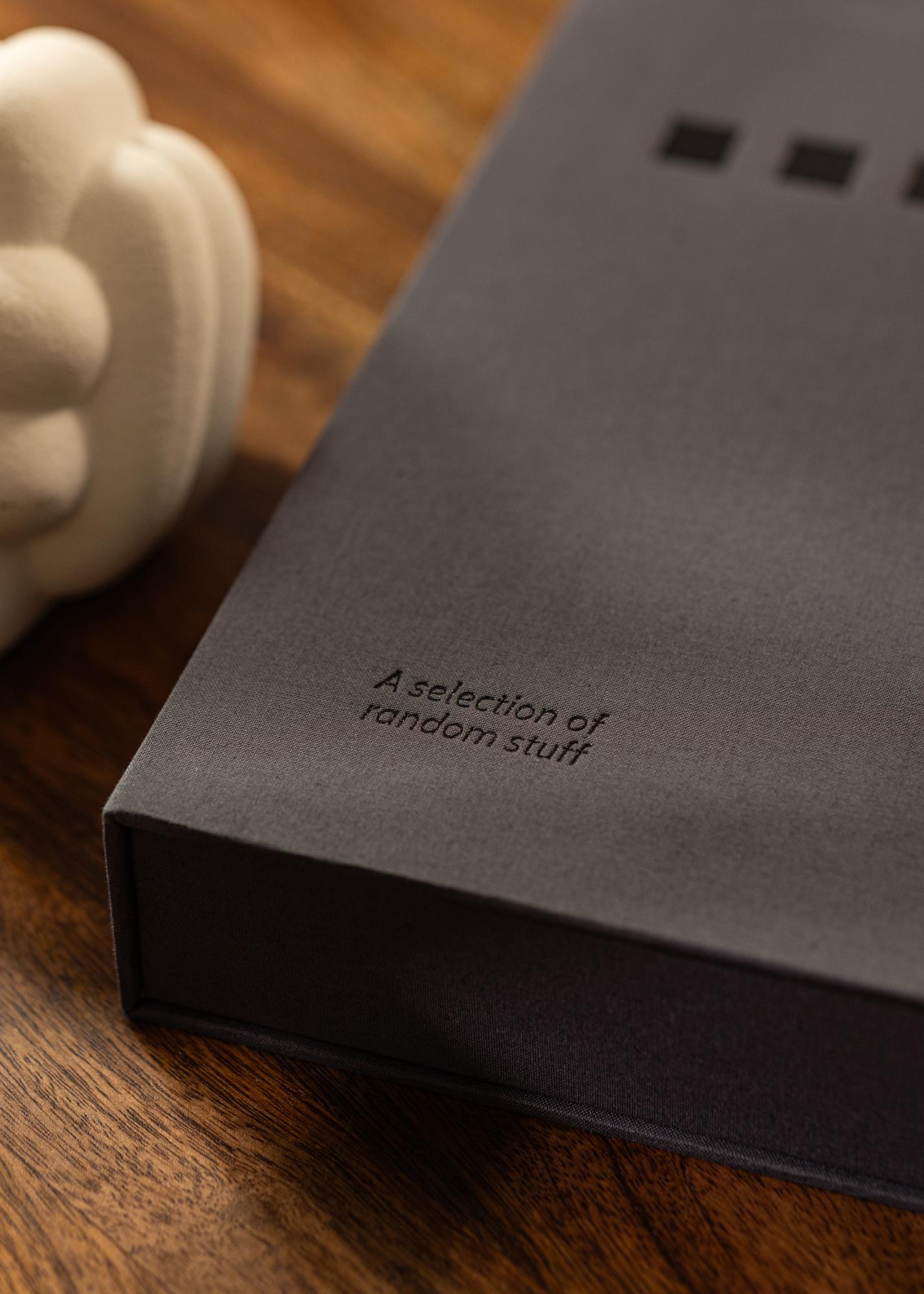 Wenn Worte überflüssig sind, Bilder und Erinnerungen für sich selbst sprechen, dann kann man gut und gerne ein Fotoalbum mit dem Titel: ... verwenden. Dieses Coffee Table Photo Album besitzt ein etwas anderes, verspielteres - aber gleichzeitig doch sehr stilsicheres - Design, weshalb es zugleich ein hübsches und trendy Einrichtungsaccessoire wie auch ein praktisches Fotoalbum darstellt. Das Fotoalbum mit Textil-Einband ist schick in elegantem Schwarz eingebunden, der wortlose Titel, glänzend aufgedruckt, ziert die Vorderseite. Als Ergänzung zum Titel gibt es auch einen Untertitel, der sich auf der linken Seite unten in der Ecke befindet:A selection of random stuff.