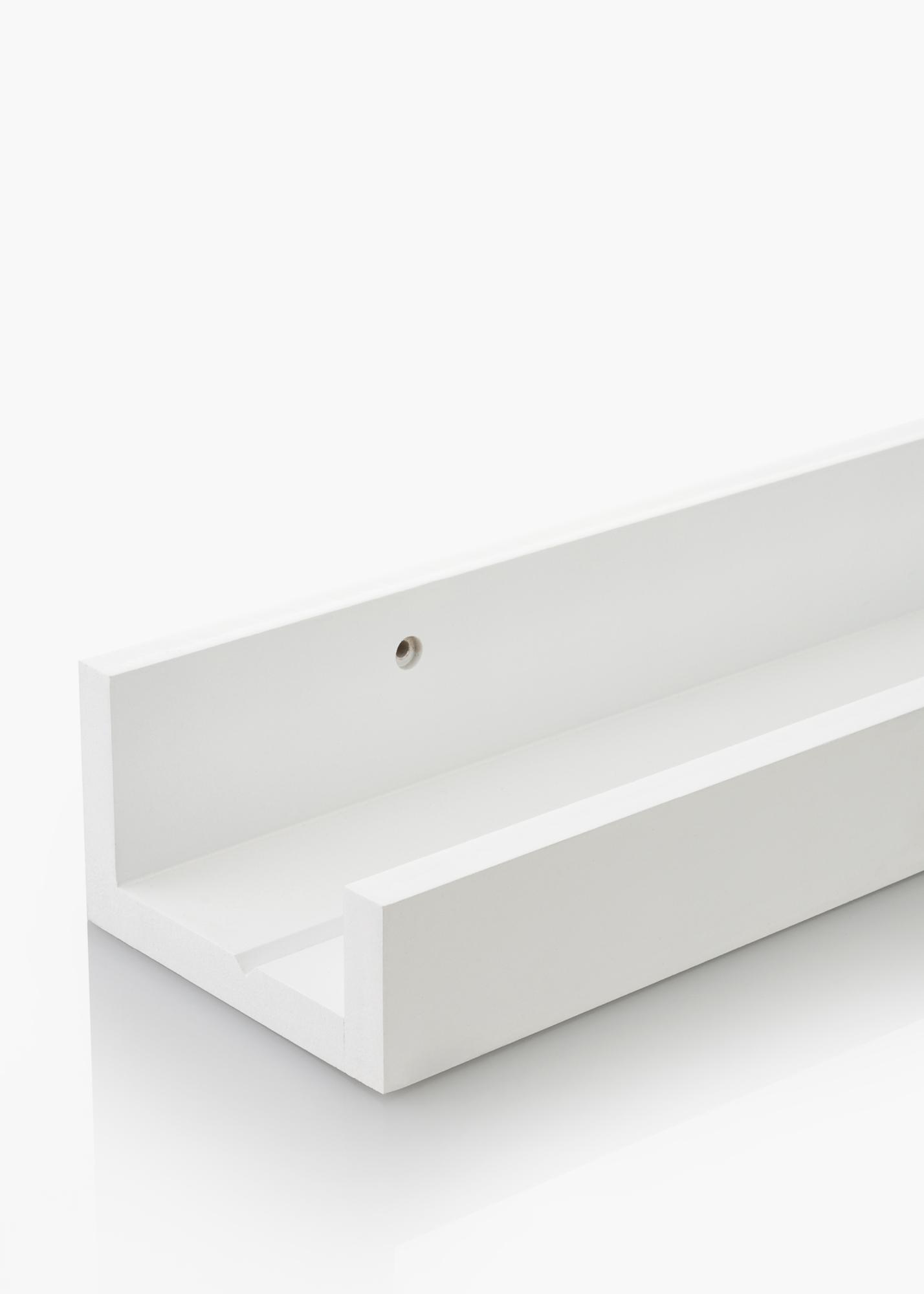 Mit einer hübschen, funktionellen Bilderleiste können Bilder und Fotos auf einfache Art schön und stilvoll präsentiert und aufgestellt werden. Außerdem können sie unkompliziert variiert und ausgetauscht werden, wenn die Wanddekoration mal wieder geändert oder erneuert werden soll. Diese elegante Bilderleiste als Wandregal für Bilder oder kleinere Dekorationsgegenstände ist aus MDF hergestellt und zeichnet sich durch die schöne, matt-glänzende, weiße Oberfläche aus. Das klare, geradlinige Design kommt zeitlos und minimalistisch daher und harmoniert gut mit vielen Einrichtungsstilen. In der Mitte des Regalbodens verläuft eine ausgefräste Rille, sodass die Bilder in optimalem Winkel an die Wand gelehnt aufgestellt werden können, ohne zu verrutschen. Die Bilderleiste ist mit vorgebohrten Löchern versehen und im Lieferumfang enthalten sind Schrauben und Dübel, um das Ganze noch einfacher zu machen.