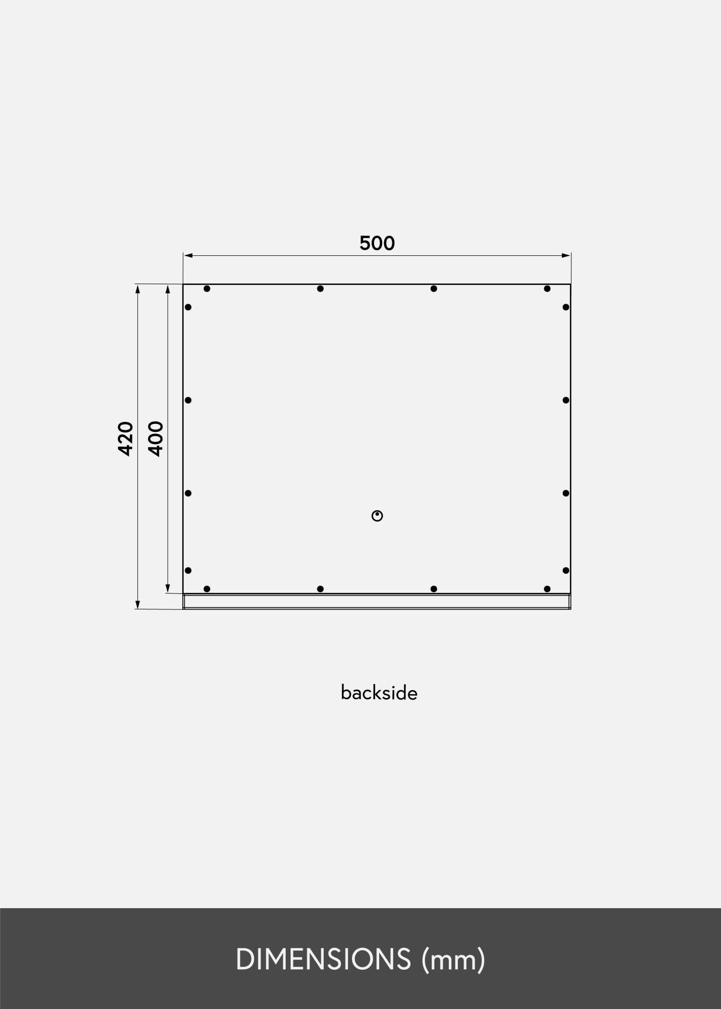 Die Beleuchtung des Spiegels besteht aus LEDs. Die Lichtquellen können nicht ausgetauscht werden und ihre Lebensdauer entspricht dem Lebenszyklus des Produktes. Nach 50.000 h reduziert sich schätzungsweise die Lichtstärke auf ca. 50% der ursprünglichen Stärke. Stromanschluss mit Stecker.