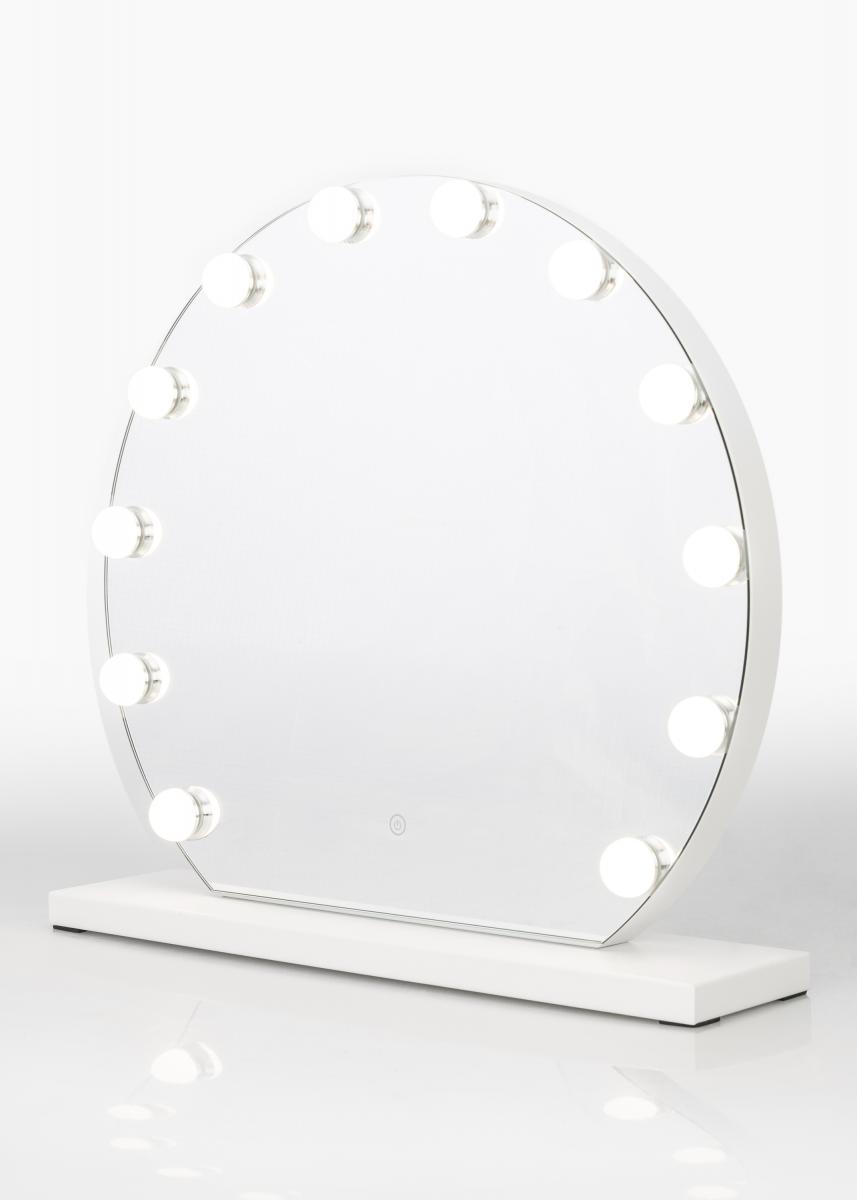 Eleganter, glamouröser LED-Badspiegel im stilvollen, weißen Farbton und einer gehörigen Portion Hollywood-Feeling! Der Badezimmerspiegel ist mit 12 dekorativen LEDs ausgestattet, die ein warmweißes Licht von 3000K abgeben - optimal für das Auftragen von Make-Up! Die Beleuchtung wird einfach durch Drücken des Touch-Sensors eingeschaltet. Indem die Sensor-Taste gedrücktgehalten wird, kann gedimmt werden. LED-Beleuchtung verbraucht weniger Energie und strahlt ein natürlicheres Licht ab.