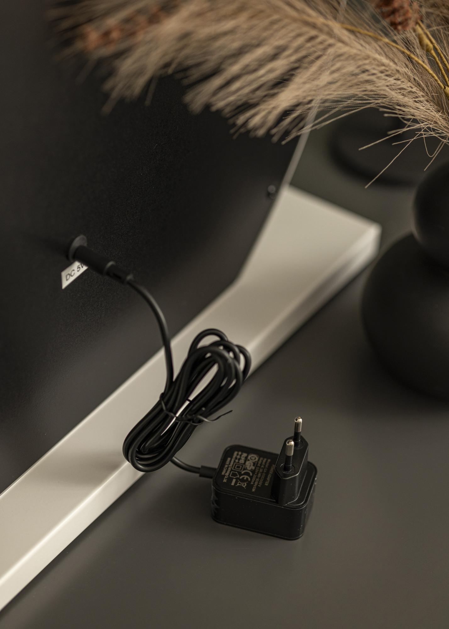 Die Beleuchtung des Spiegels besteht aus LEDs. Die Lichtquellen können nicht ausgetauscht werden und ihre Lebensdauer entspricht dem Lebenszyklus des Produktes. Nach 50.000 h reduziert sich schätzungsweise die Lichtstärke auf ca. 50% der ursprünglichen Stärke. Stromanschluss mit Stecker.