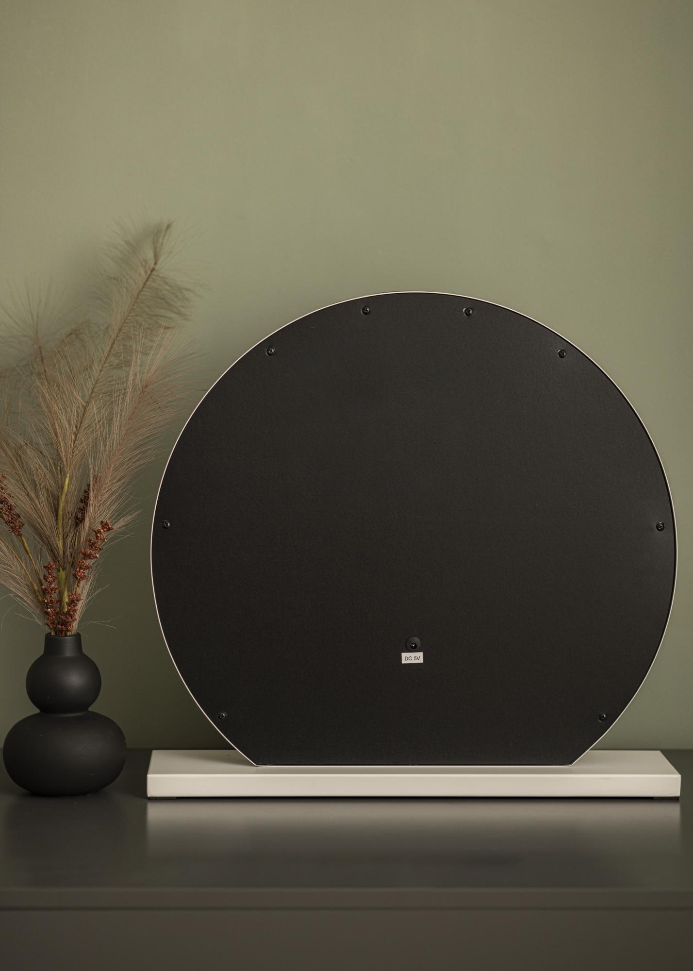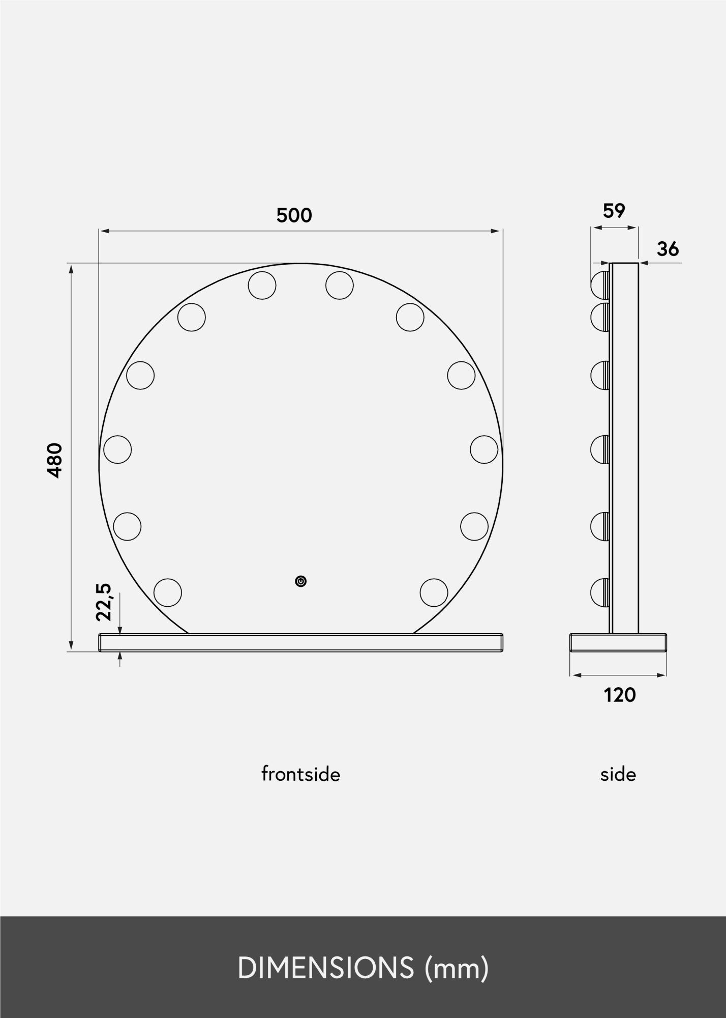Der Badspiegel mit Licht besitzt die Größe von 50x48 cm. Durch die schöne, gerundete Formgebung ist der Badspiegel mehr, als nur ein funktioneller Spiegel. Das exklusive Design verleiht diesem Einrichtungsdetail eine ausdrucksstarke Wirkung mit Glamoureffekt, der an einen Beauty-Salon denken lässt.