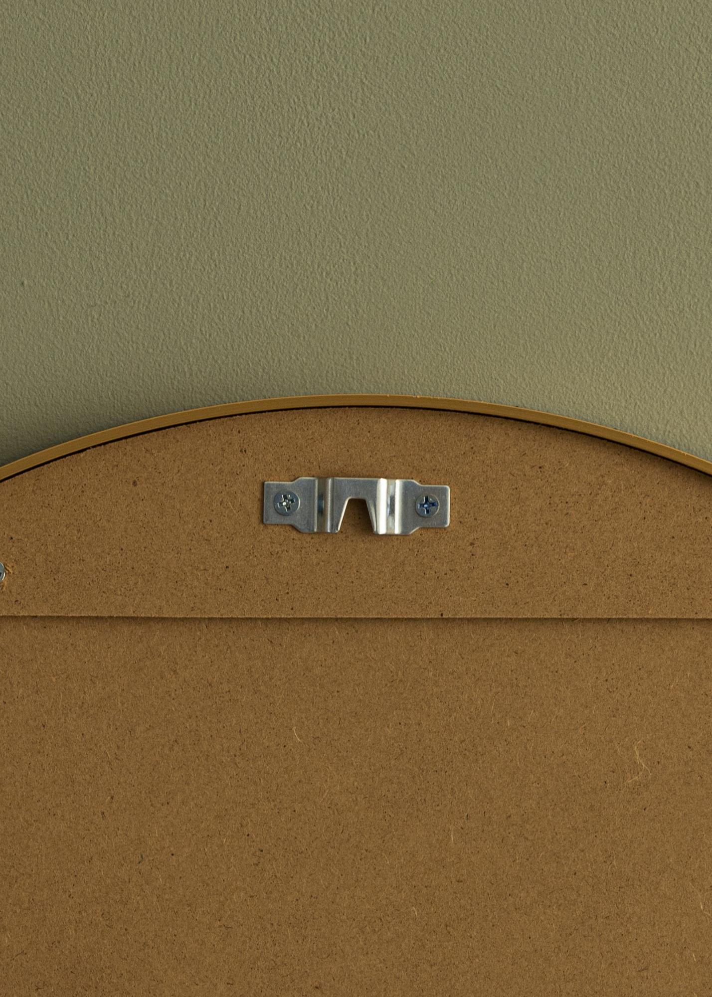 KAILA Round Mirror Edge Gold ist in verschiedenen Größen erhältlich. Diese Variante hat einen Durchmesser von 50 cm und verfügt über zwei vormontierte Wandhalterungen auf der Rückseite, die für eine einfache und stabile Befestigung an der Wand sorgen. Passende Schrauben und Dübel werden mitgeliefert.